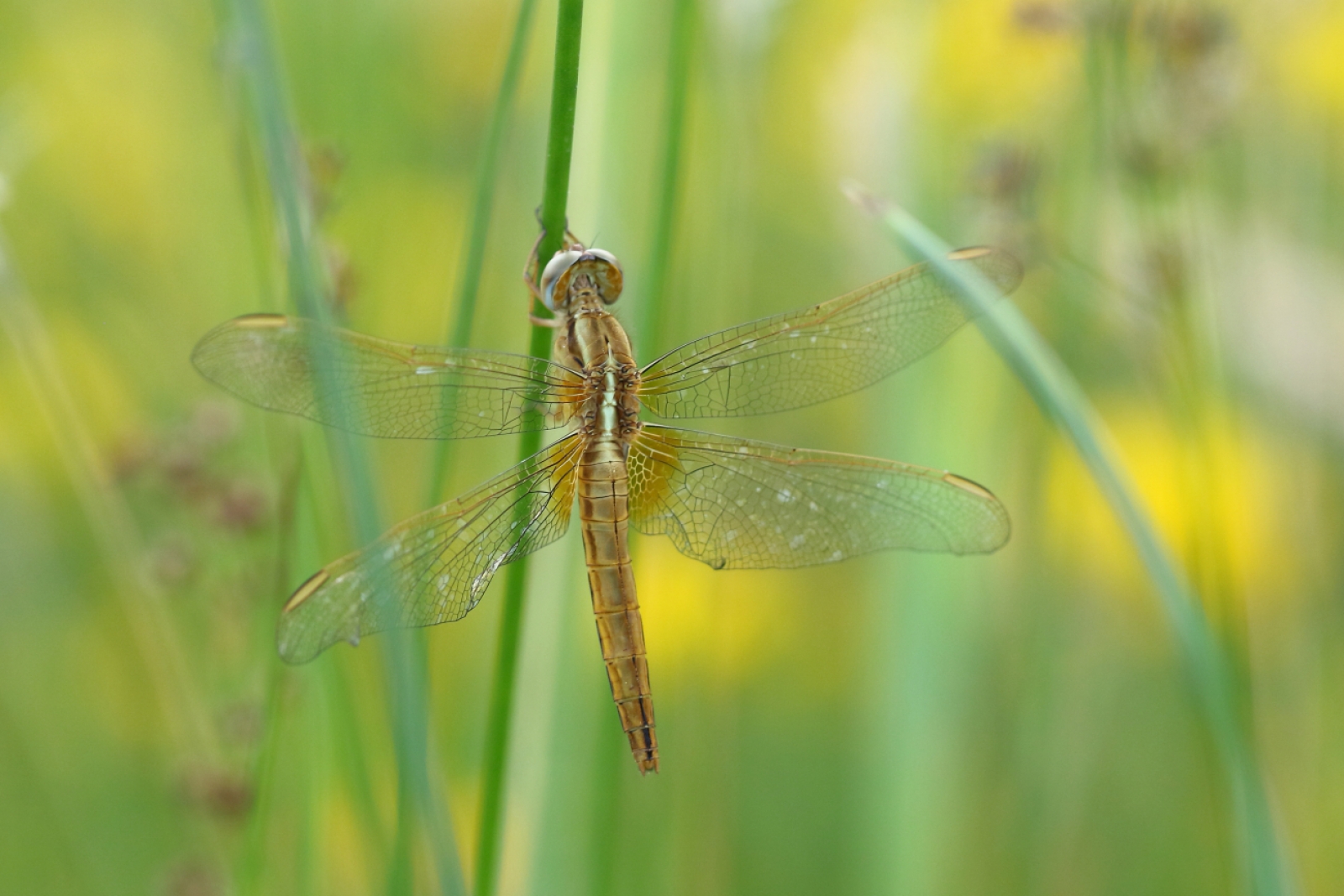Mooie foto. De tere vleugels zijn tegen de - in verhouding wat fellere - achtergrond goed te zien.