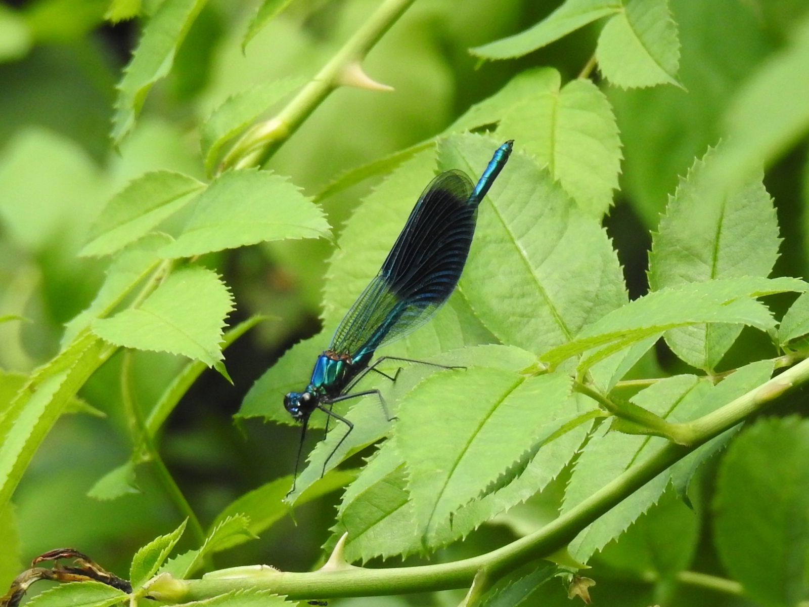 Weidebeekjuffers zijn forse juffers met brede vleugels en een dicht netwerk van vleugeladers. De mannetjes hebben een blauw metaalglanzend lichaam en een grote zwarte vlek in de vleugels (van de knoop tot vlak onder de top). De vleugeladers hebben een blauwe glans. Pterostigma's ontbreken. De onderkant van de achterlijfspunt is vuilwit gekleurd