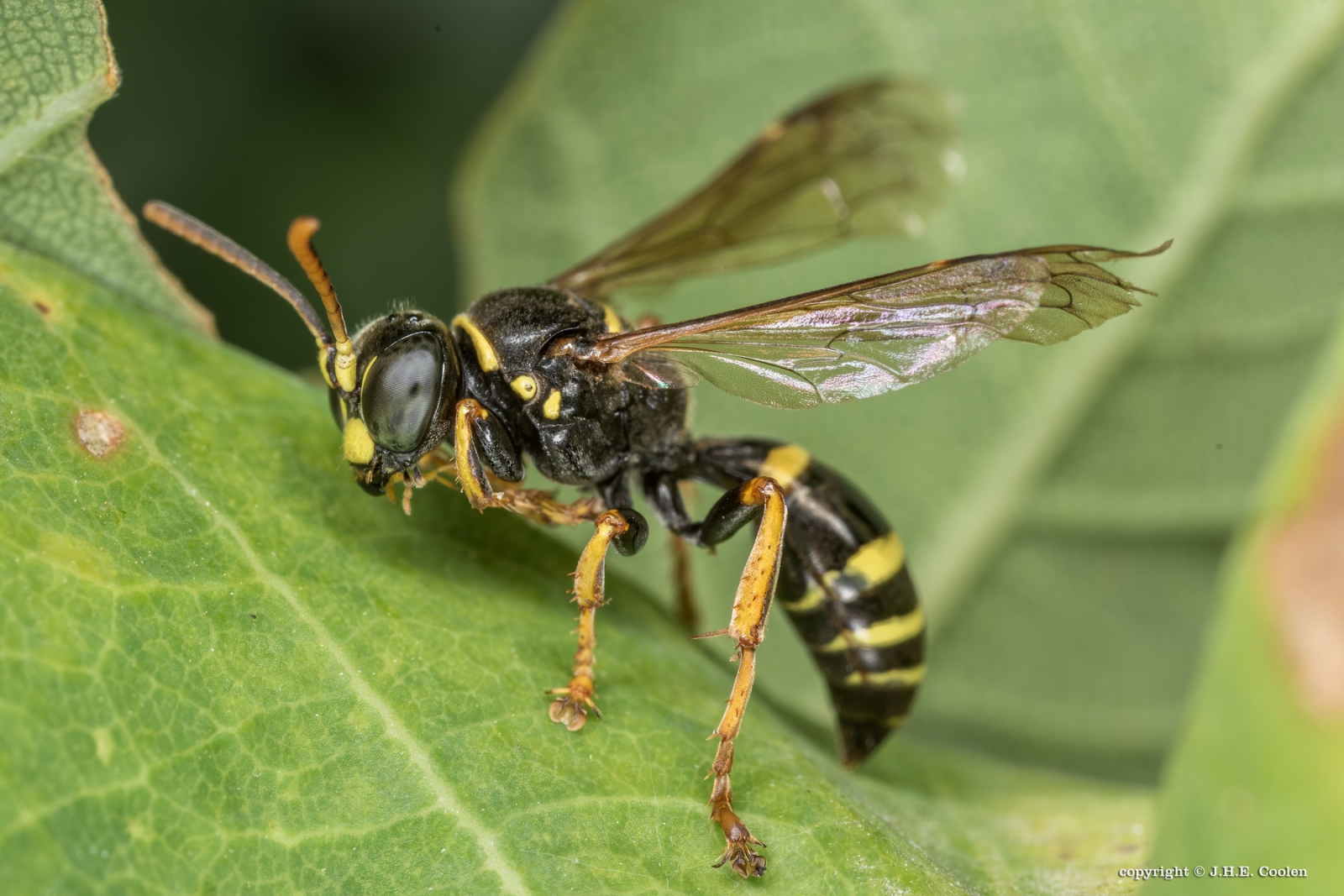 Deze heeft erg veel weg van het vrouwtje van de Gewone muurwesp Ancistrocerus parietum.