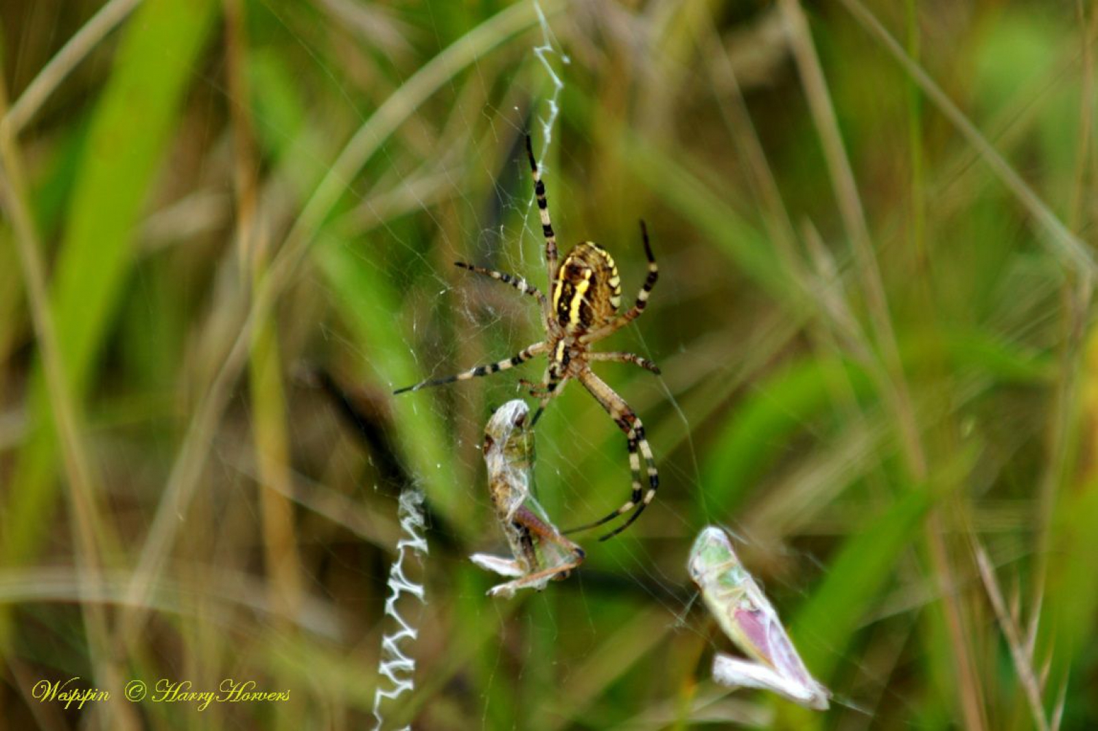Wespspin met onfortijnlijke sprinkhanen