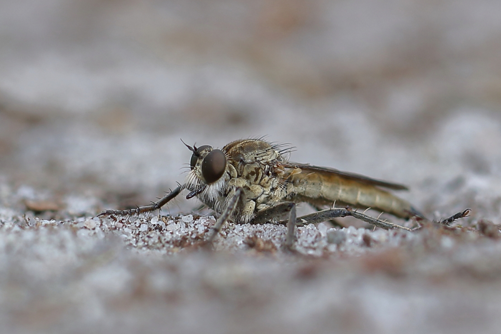 Mooi gefotografeerd, deze bebaarde roofvlieg.