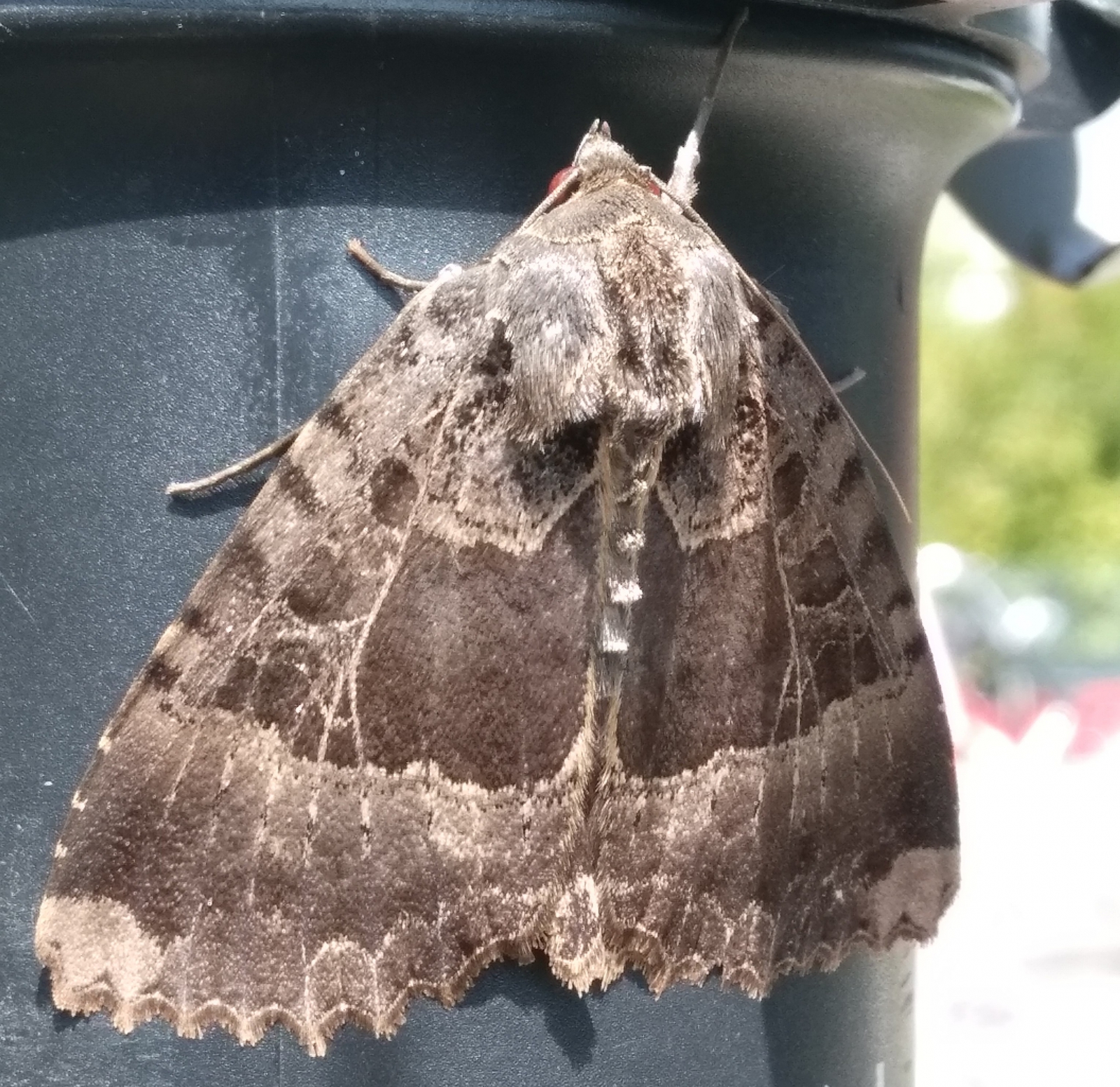 Uiltje. Vooral 's nachts actief. Overdag vaak verscholen in de hoes van de droogmolen. Sinds 2017 zit het zwart weeskind in mijn atelier. Foto genomen op 21 juli 2019 met mobiel.