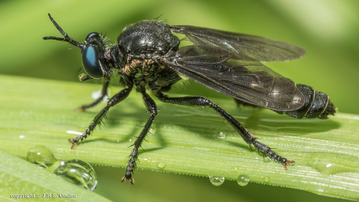 Ze jagen, min of meer verticaal hangend, vanaf stengels en grassprieten.