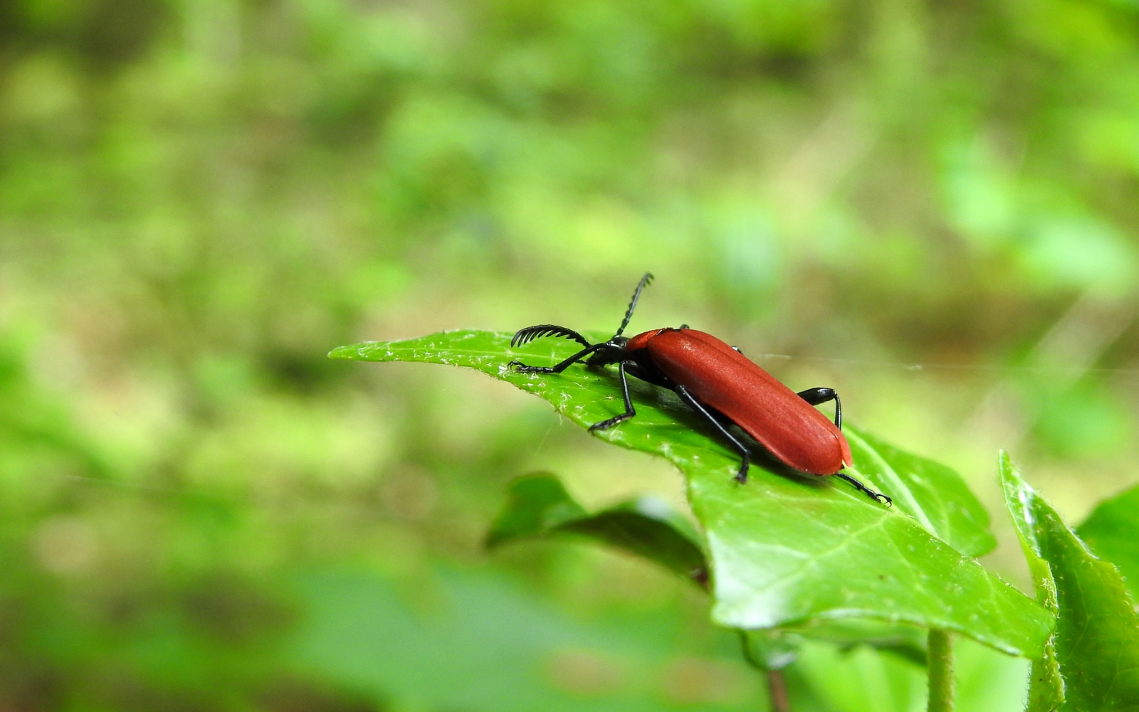 Mooie foto, die valt wel erg op met zijn rode kleur op die groene bladeren.