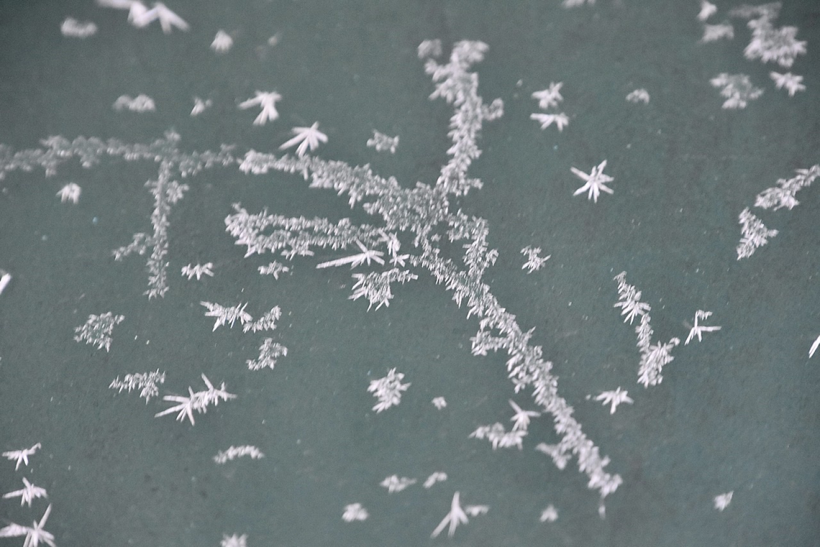 Op de papiercontainer. Allerlei figuurtjes in ijs.