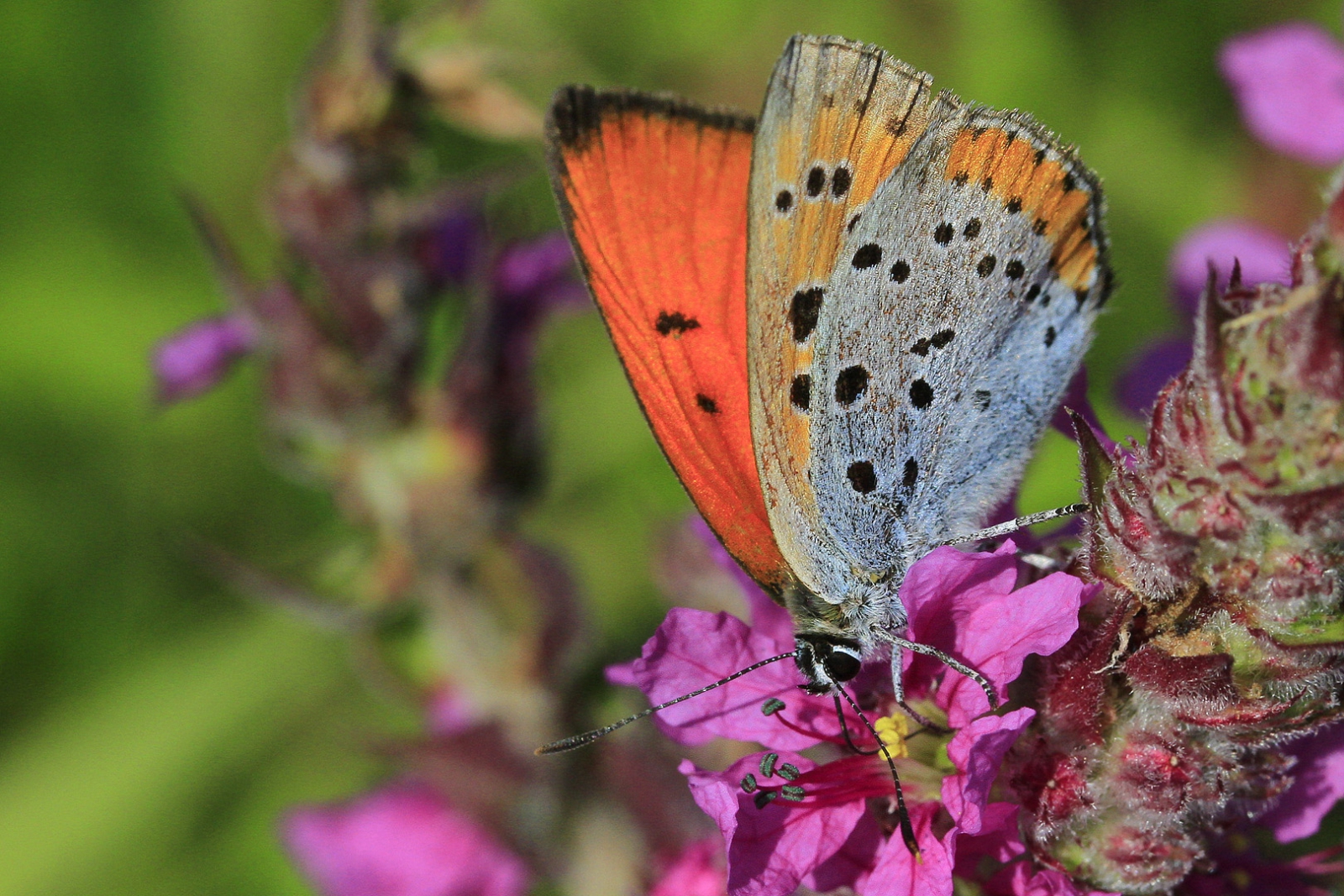Een mannetje Grote Vuurvlinder op kattestaart