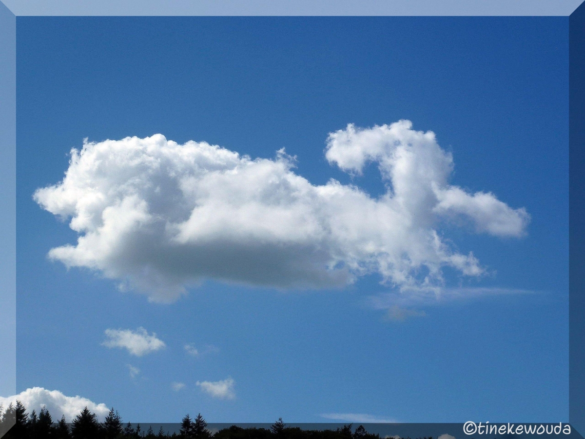 Een konijnengek als ik ziet overal konijnen in. Deze wolk lijkt precies op een angorakonijn. Anderen zien er mogelijk een in tegenovergestelde richting wegrennend zwijn of wegrennende hond in.