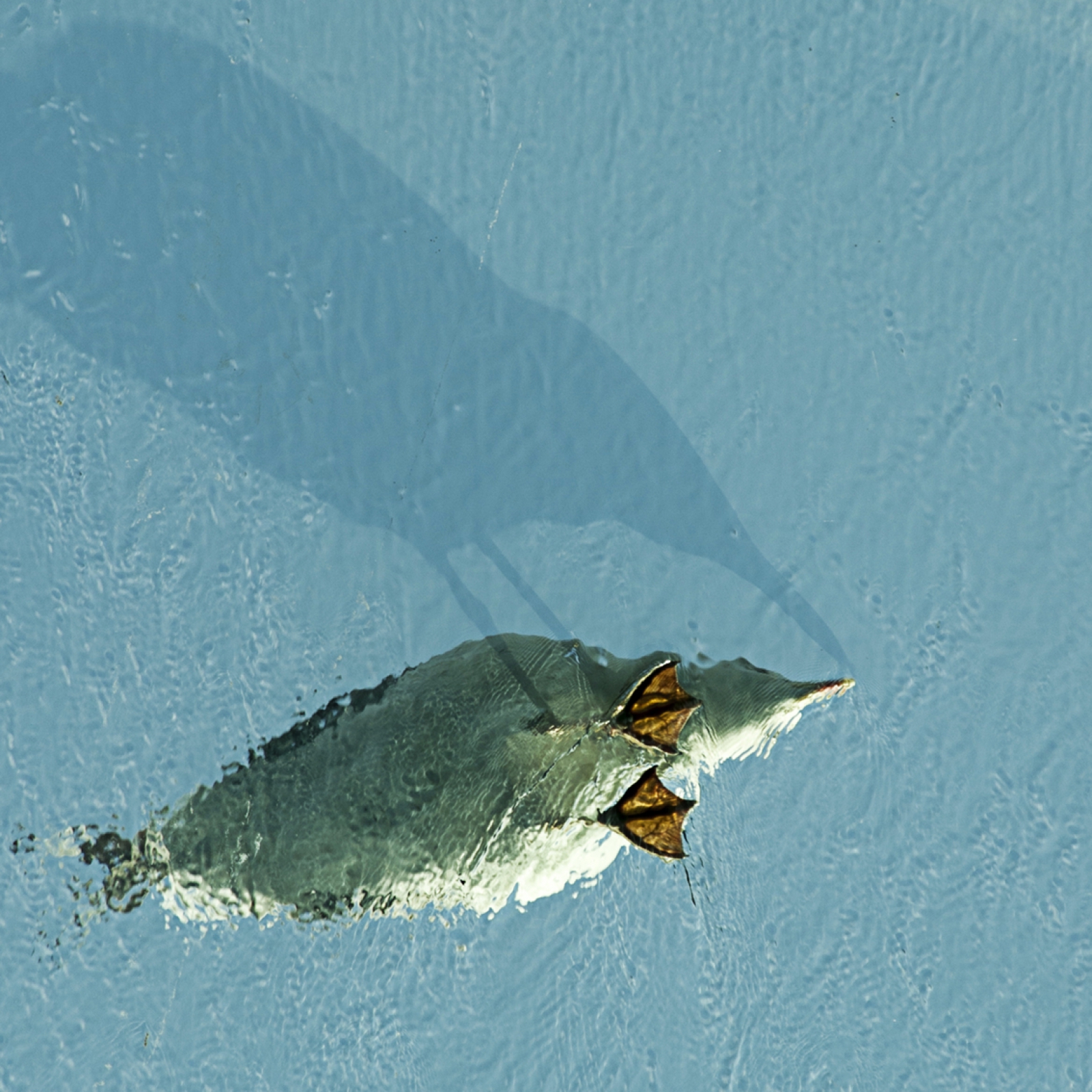De schaduw vertelt het verhaal maar je zult zelden op deze manier een meeuw van onderen kunnen bekijken.