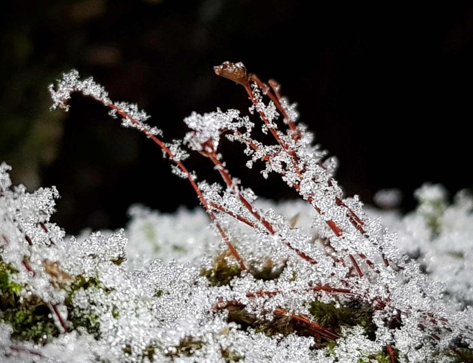 Het mos komt nog net boven de sneeuw uit. Prachtig om te zien met het ijs er omheen.