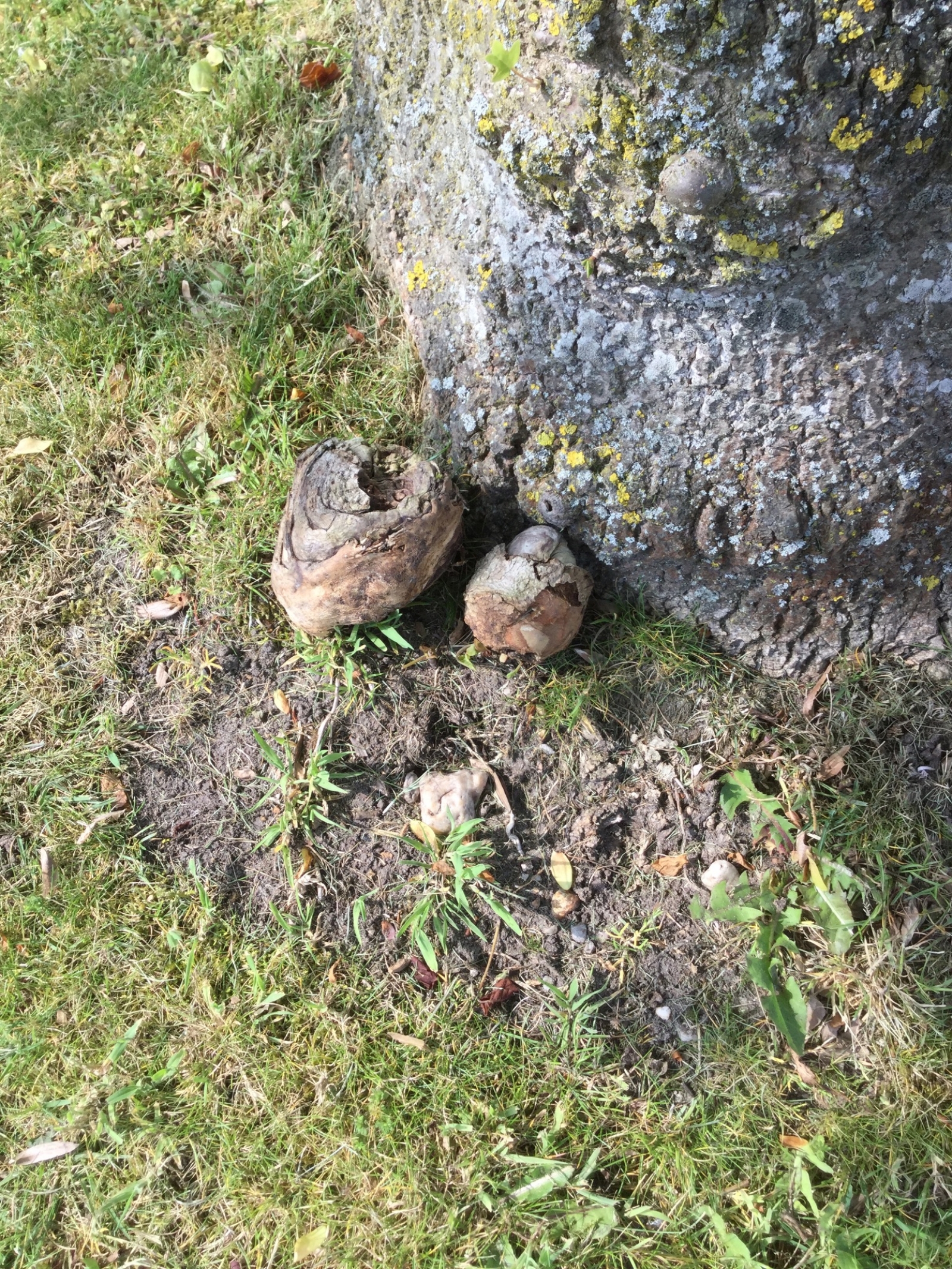 Deze knollen vond ik aan de voet van de liriodendron (tulpenboom). Ze zijn licht en hebben bijzondere geur. 10 cm en iets groter. Liggen min of meer los tegen de boomstam.