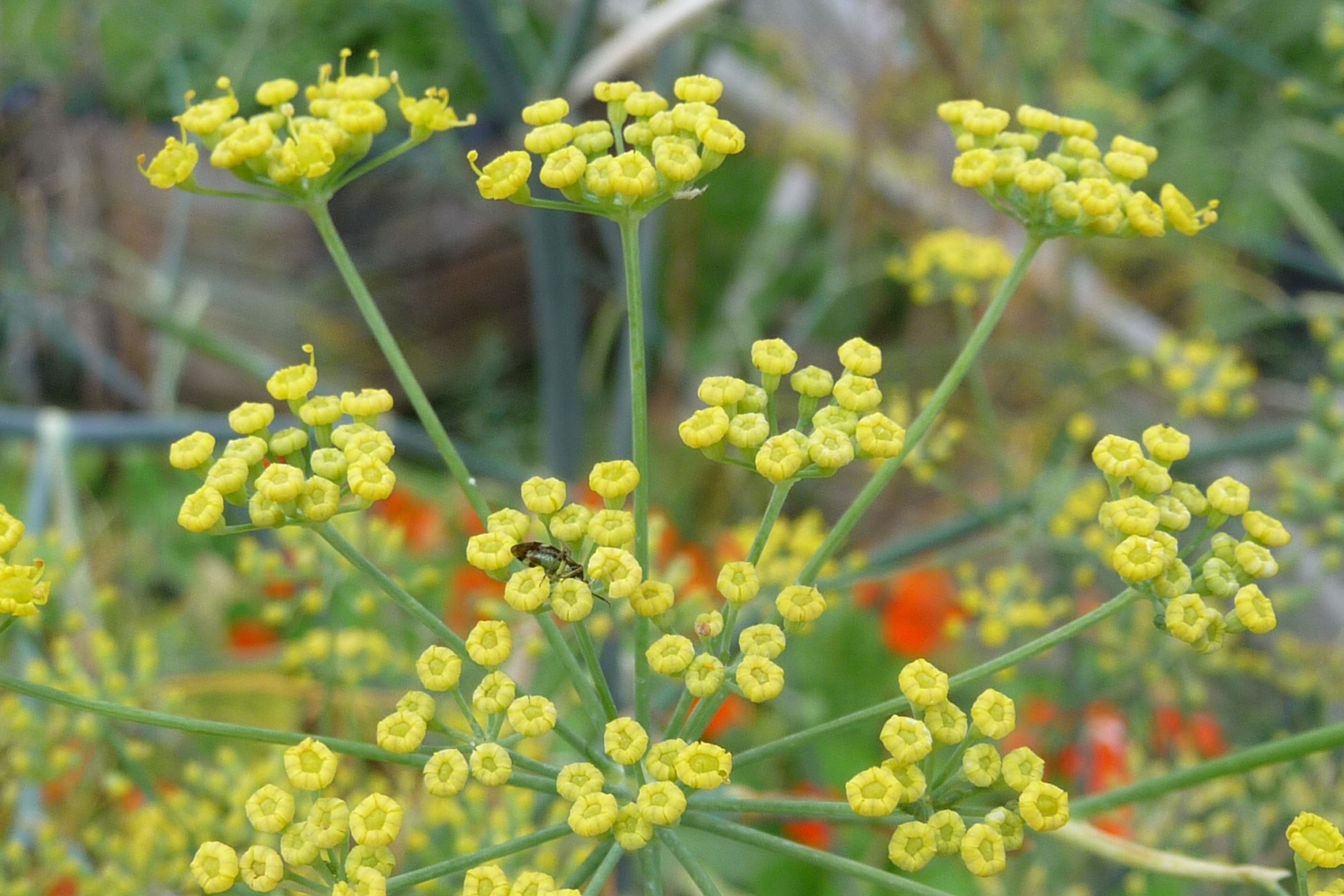 ik denk ook venkel, maar wat voor prachtig beestje zit daar tussen?