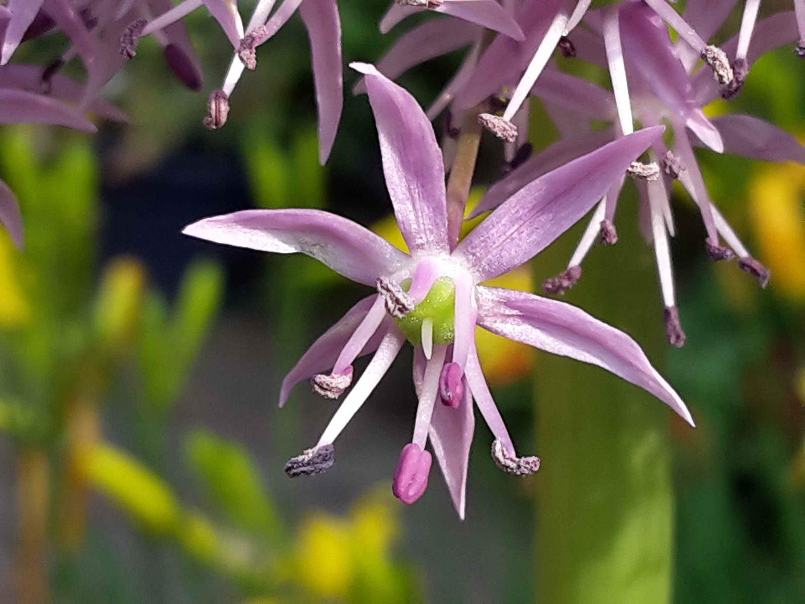 De bol van de sierui bestaat uit heel veel prachtige kleine bloemetjes. En dit is er een van.