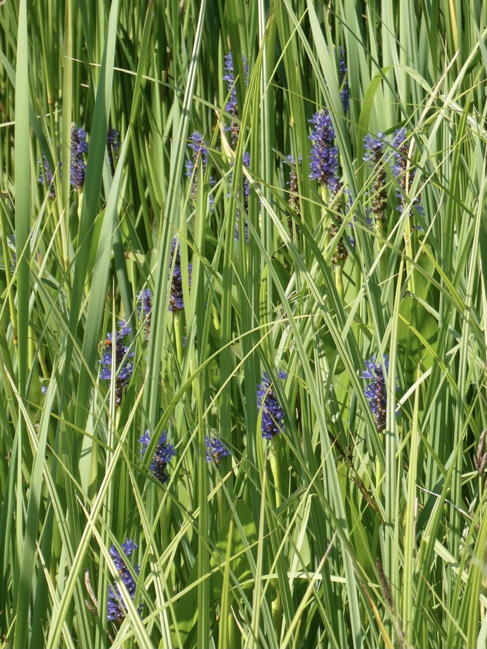 Mooie blauwe waterplant langs een zwemvijver