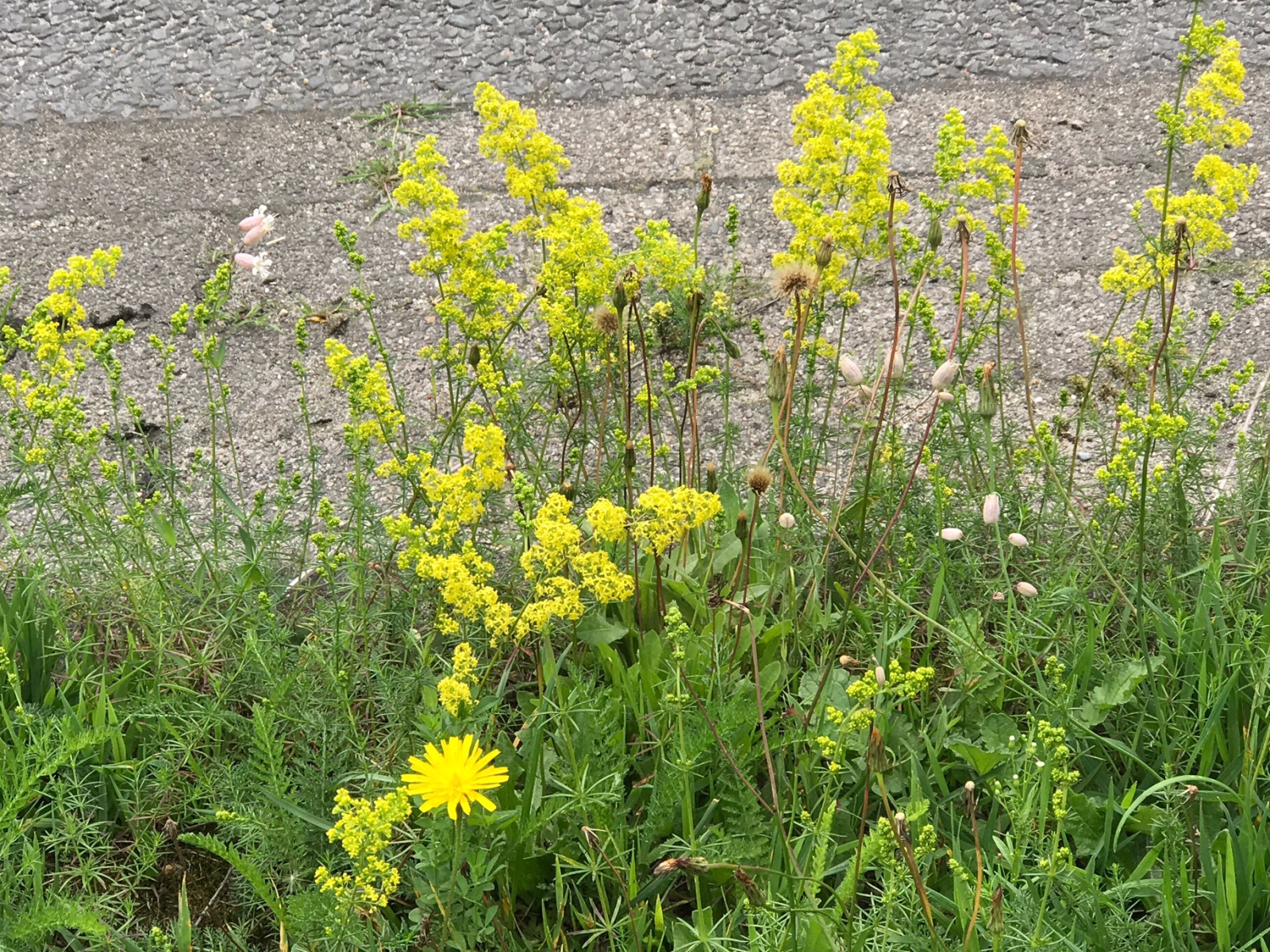 We beginnen rond Pasen met geel en het seizoen eindigt ook weer met geel in de bermen. Is dit Wede? Volgens het Forum is het Geel Walstro! Dank!