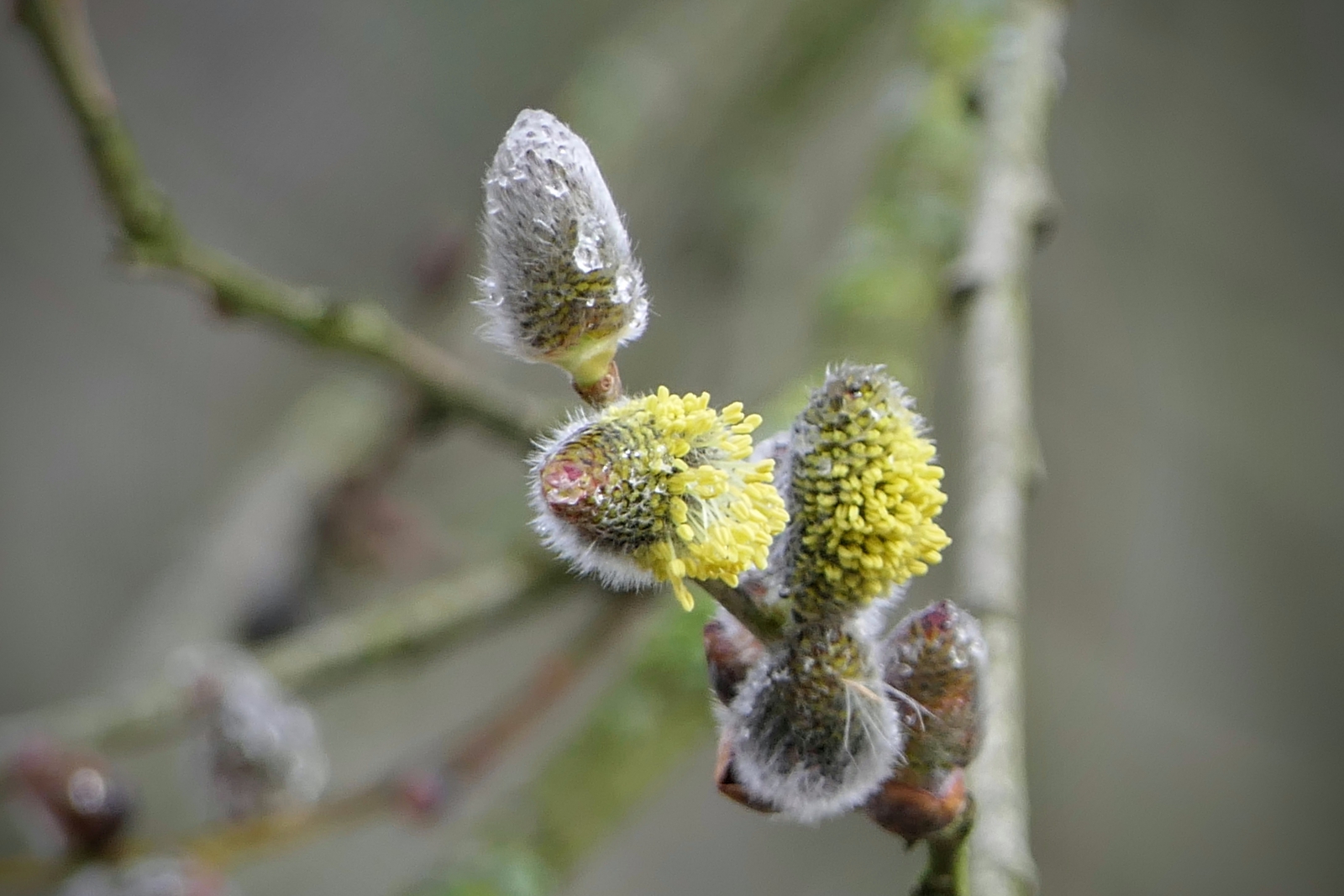 Wilgenkatjes: de bloeiwijze van de wilg heeft de vorm van een katje en groeit uit de zijknoppen van een eenjarige twijg. De wilgenkatjes zitten of staan, dit in tegenstelling tot de hangende katjes bij populieren. De zachte wilgenkatjes trekken hommels en bijen aan.