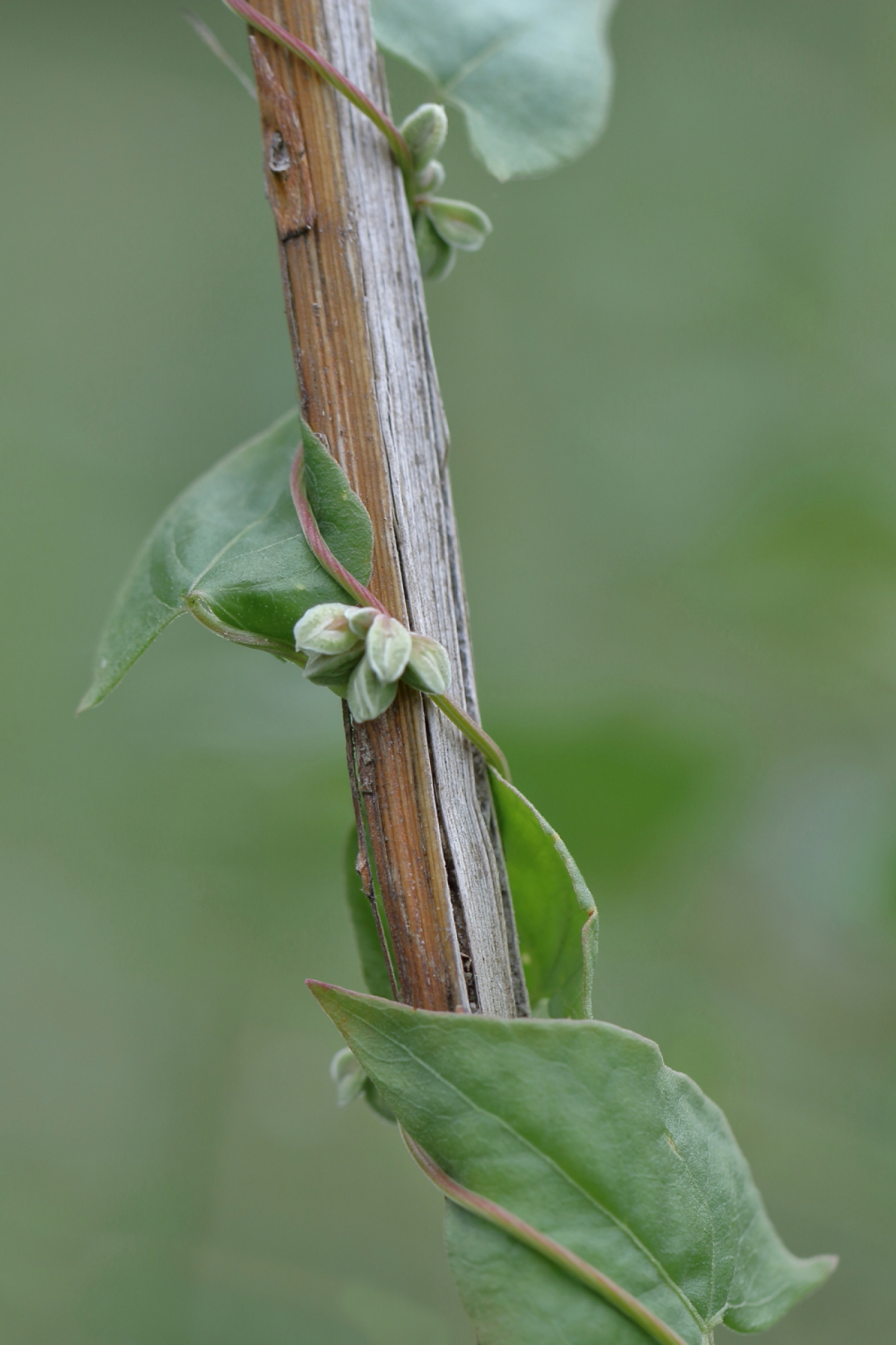 De bladeren zijn driehoekig tot hartvormig en puntig. De onderzijde is vaak poederachtig wit.