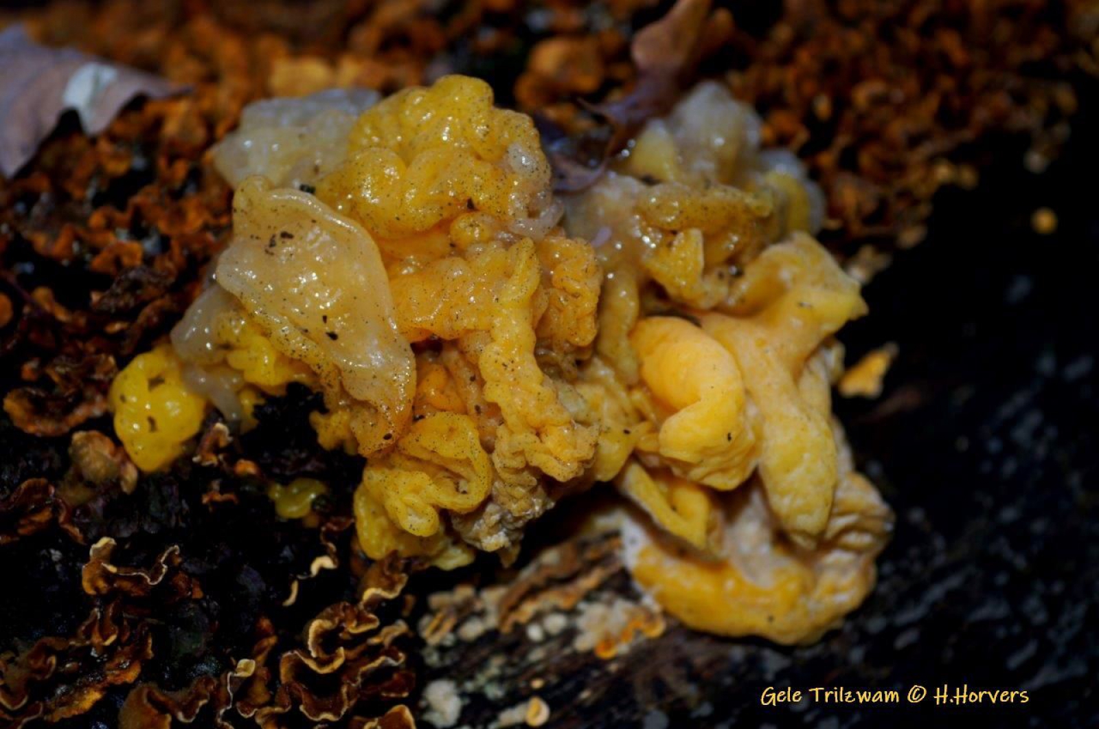 Gele Trilzwam . variabel van kleur , div. tinten geel ...tot bijna kleurloos