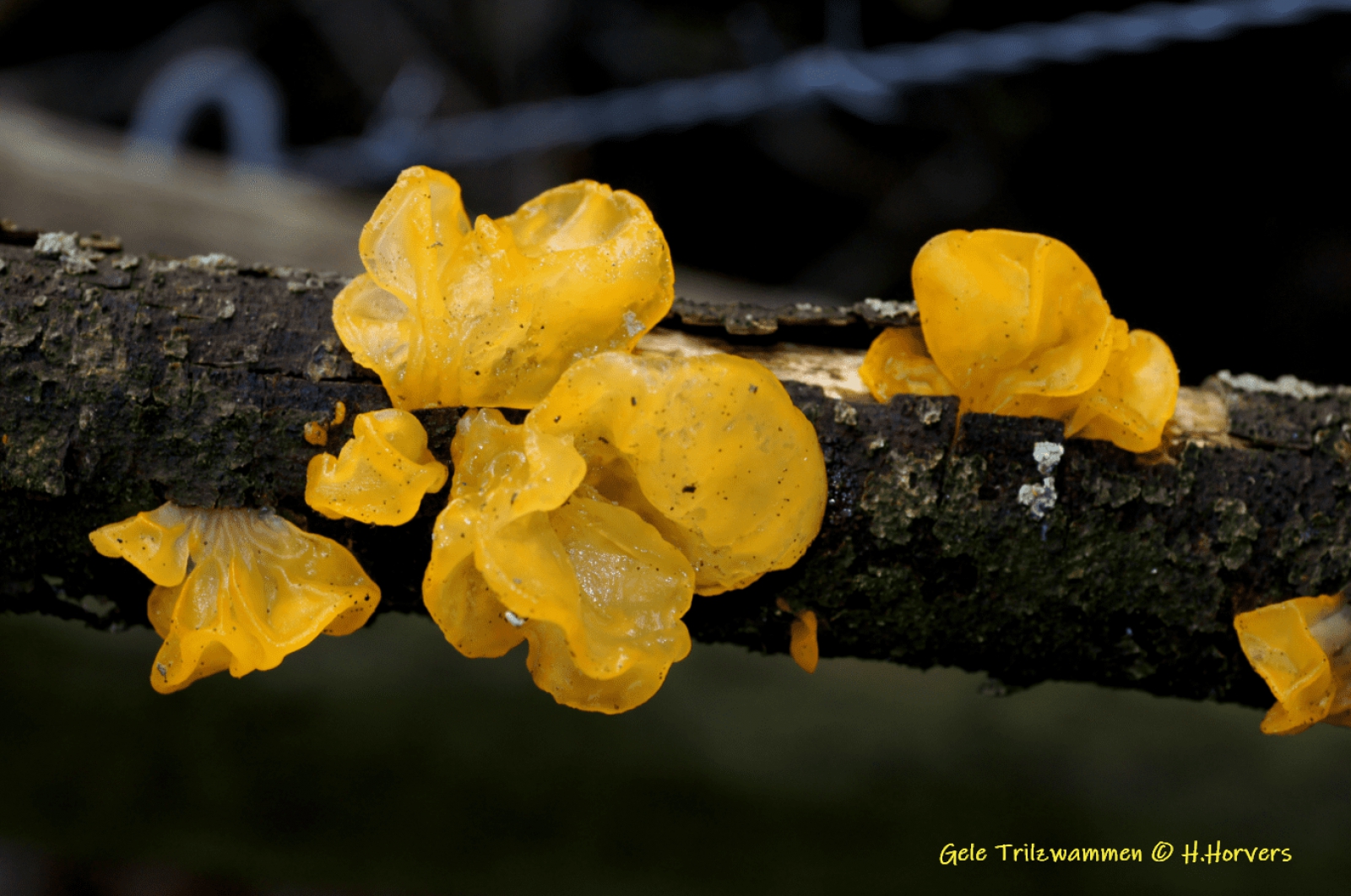 Gele Trilzwammen op tak.