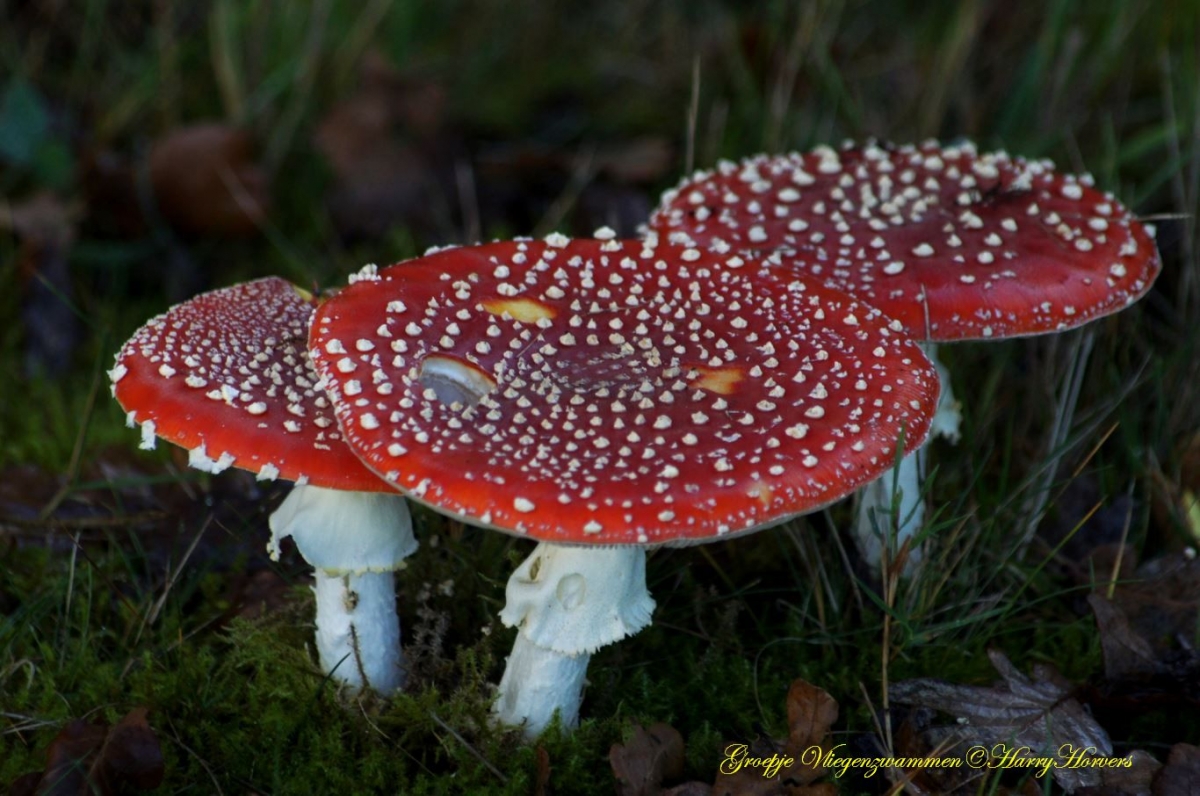 groepje vliegenzwammen, met sporen van slakkenvraat