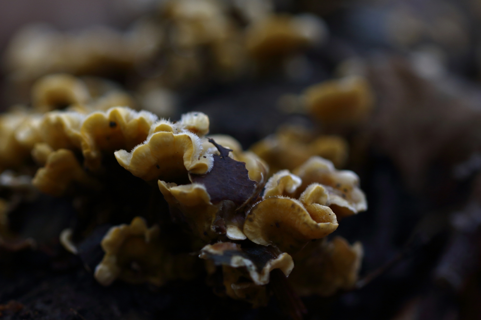Zou gele korstzwam KUNNEN zijn. In ieder geval een sfeervolle foto.