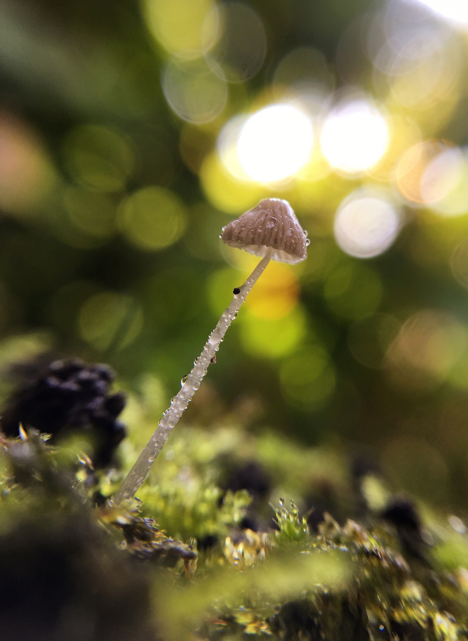 Een hele kleine paddenstoel in het mos