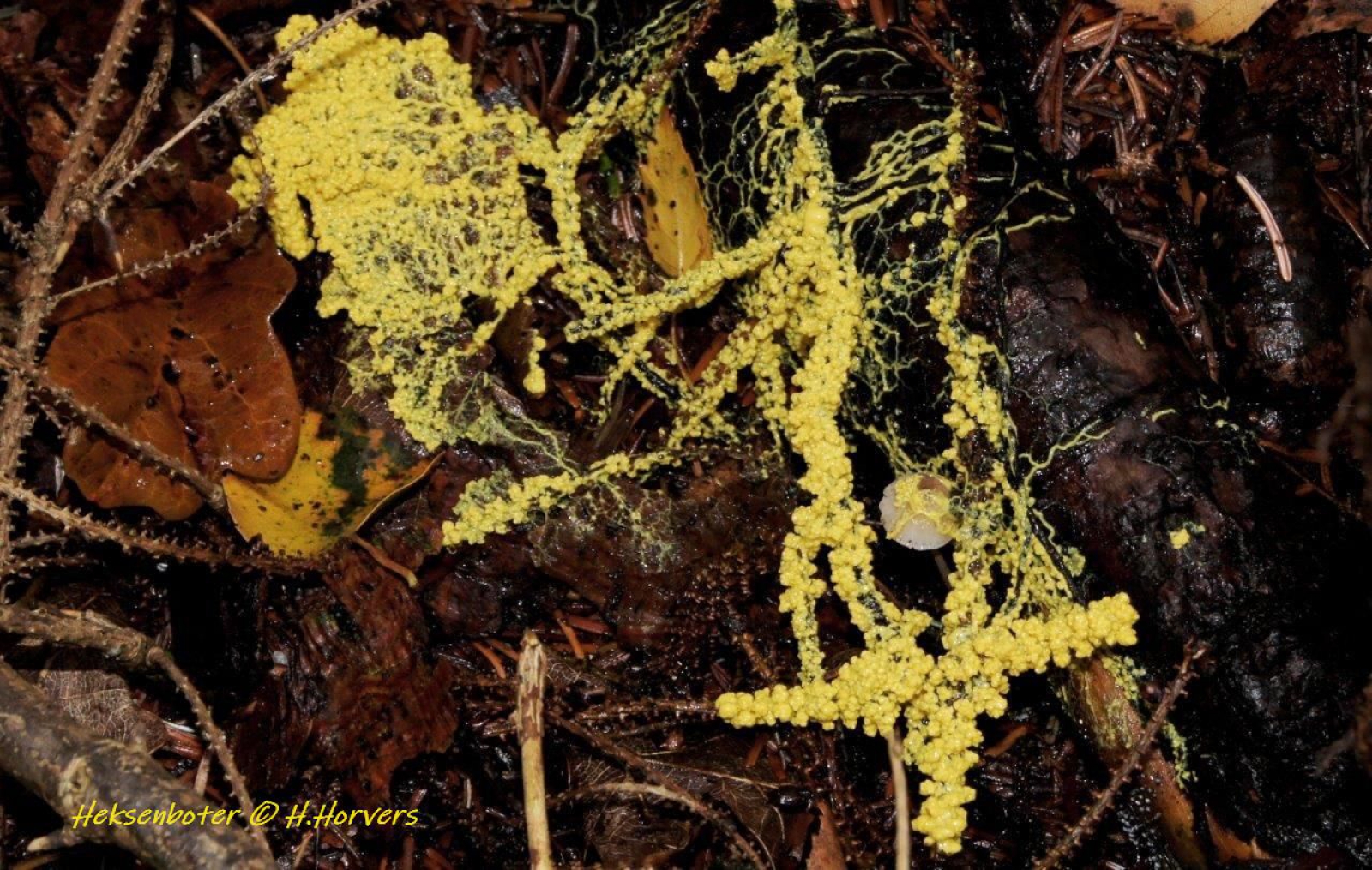 Blaadjes en takjes overwoekerd met Heksenboter