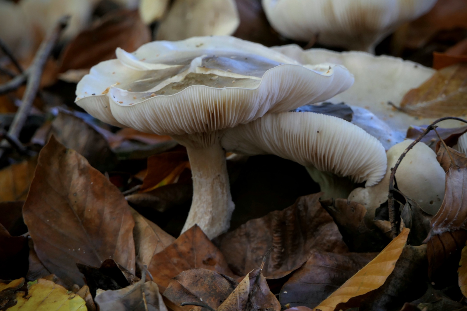 De nevelzwam is een algemeen voorkomende grijze tot grijsbruine paddenstoel. Hij groeit onder bomen in grote groepen of kringen in dikke lagen strooisel.