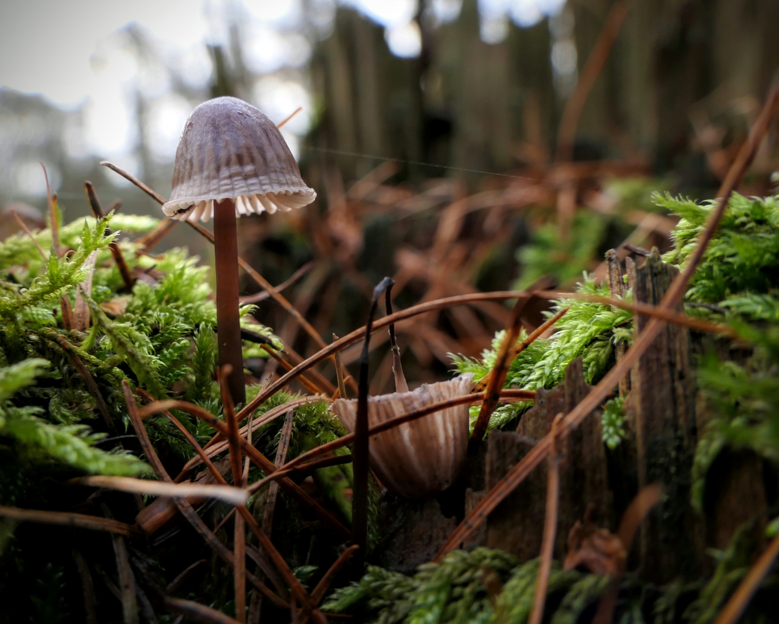 Dit paddestoeltje houdt zich nog goed staande, jammer dat de andere geknakt is.