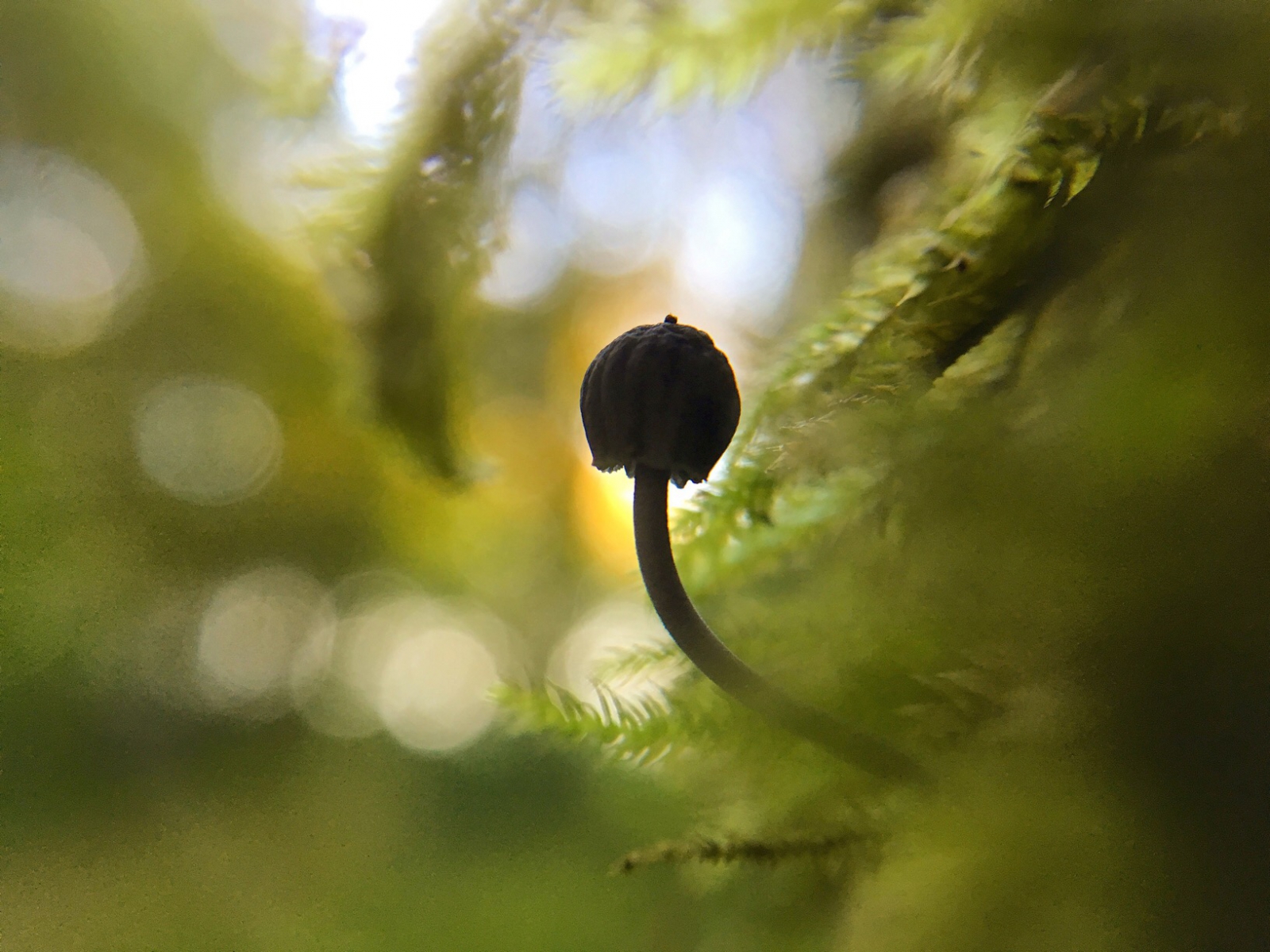 Dit hele kleine paarse paddenstoeltje zat op een boom die vol zat met mos en daar kwam het uit je moest echt goed kijken want je ziet ze haast niet met het blote oog