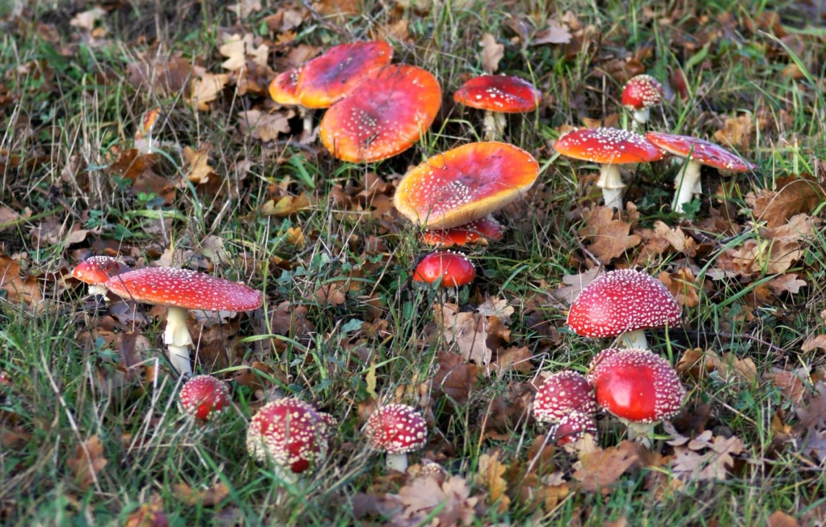 Vèèl paddestoelen...(vliegenzwammen) Soms heb je eens mazzel en vind je er ineens een heleboel ...