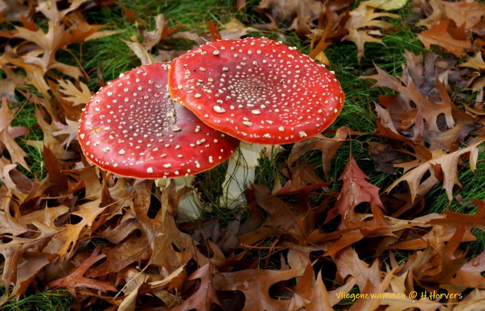 Mooie foto van de Vliegezwam en warme herfstkleuren.