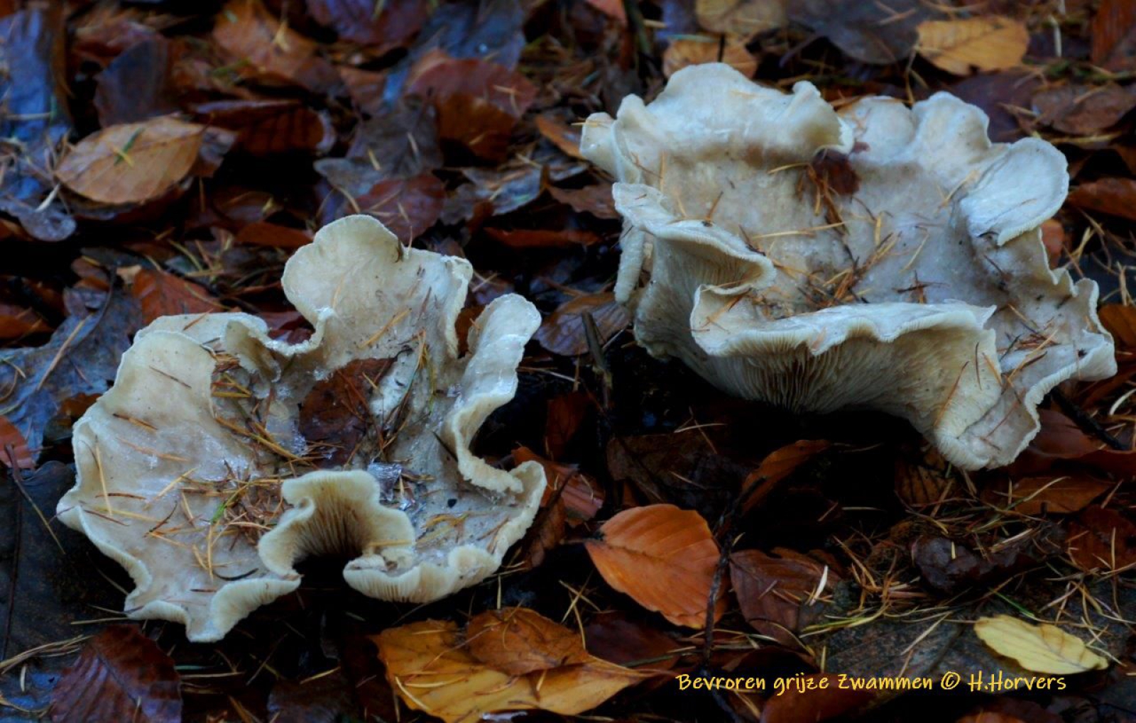 Bevroren grijze Zwammen na de koude nacht van 20-11-2019