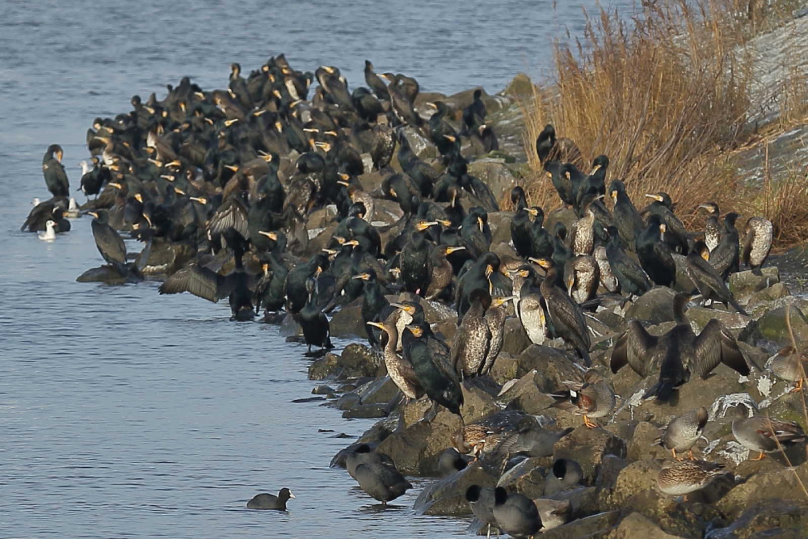 wat een mooi plaatje , zoveel Aalscholvers
