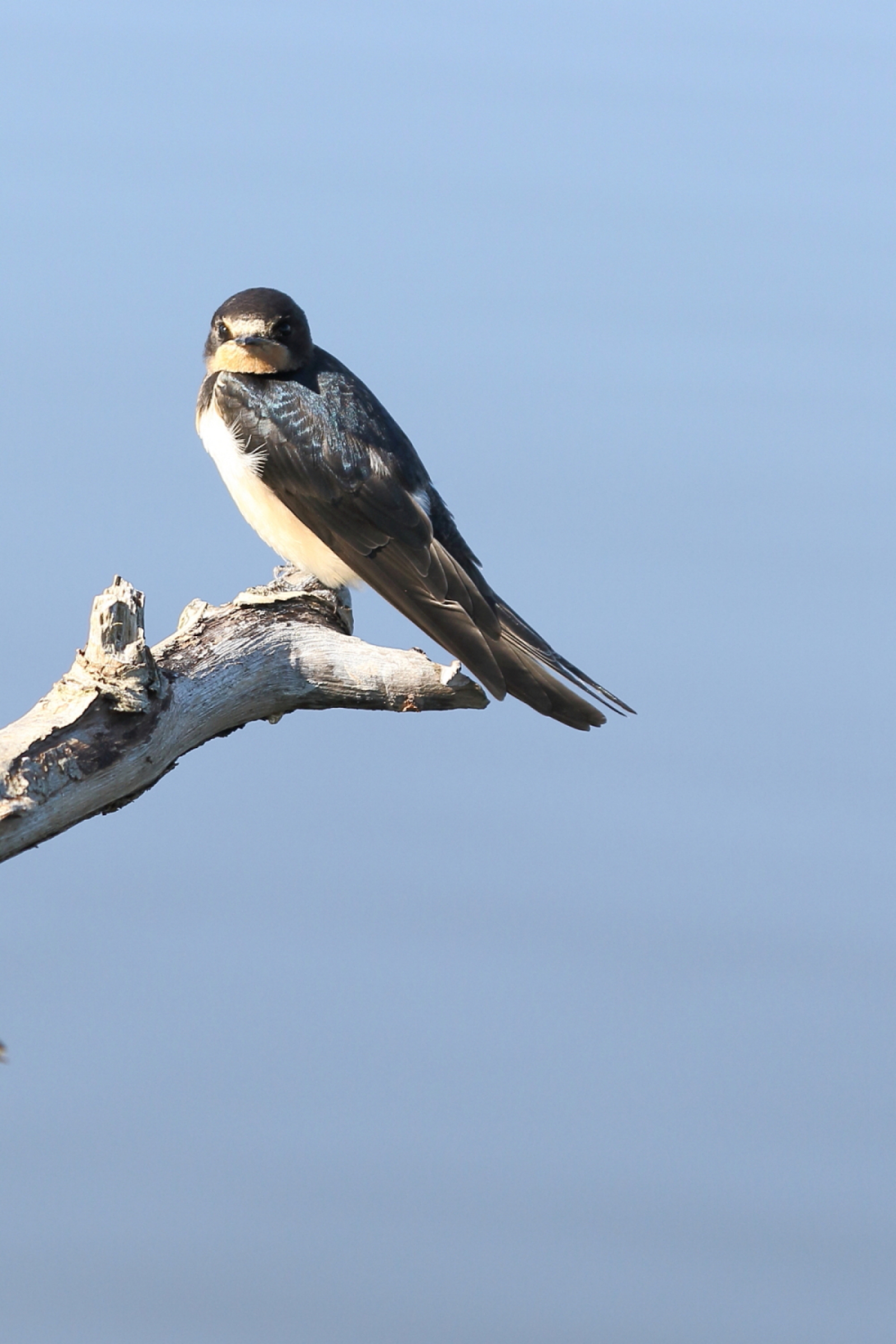Bij een aangelegde plas zag ik enkele boerenzwaluwen laag over het water vliegen met een snelheid waarbij het lastig was ze goed te fotograferen. Tot mijn verbazing nam een van de vogels plaats op een dikke tak en dat maakte het een stuk makkelijker….