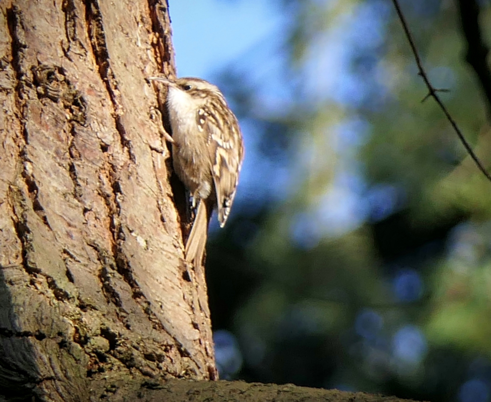 Met zijn spitse omlaaggebogen snavel peutert de boomkruiper insecten uit spleten in de boombast. Hij leunt met zijn staart tegen de boom aan bij het omhoogklimmen en klimt spiraalsgewijs langs een boomstam omhoog.