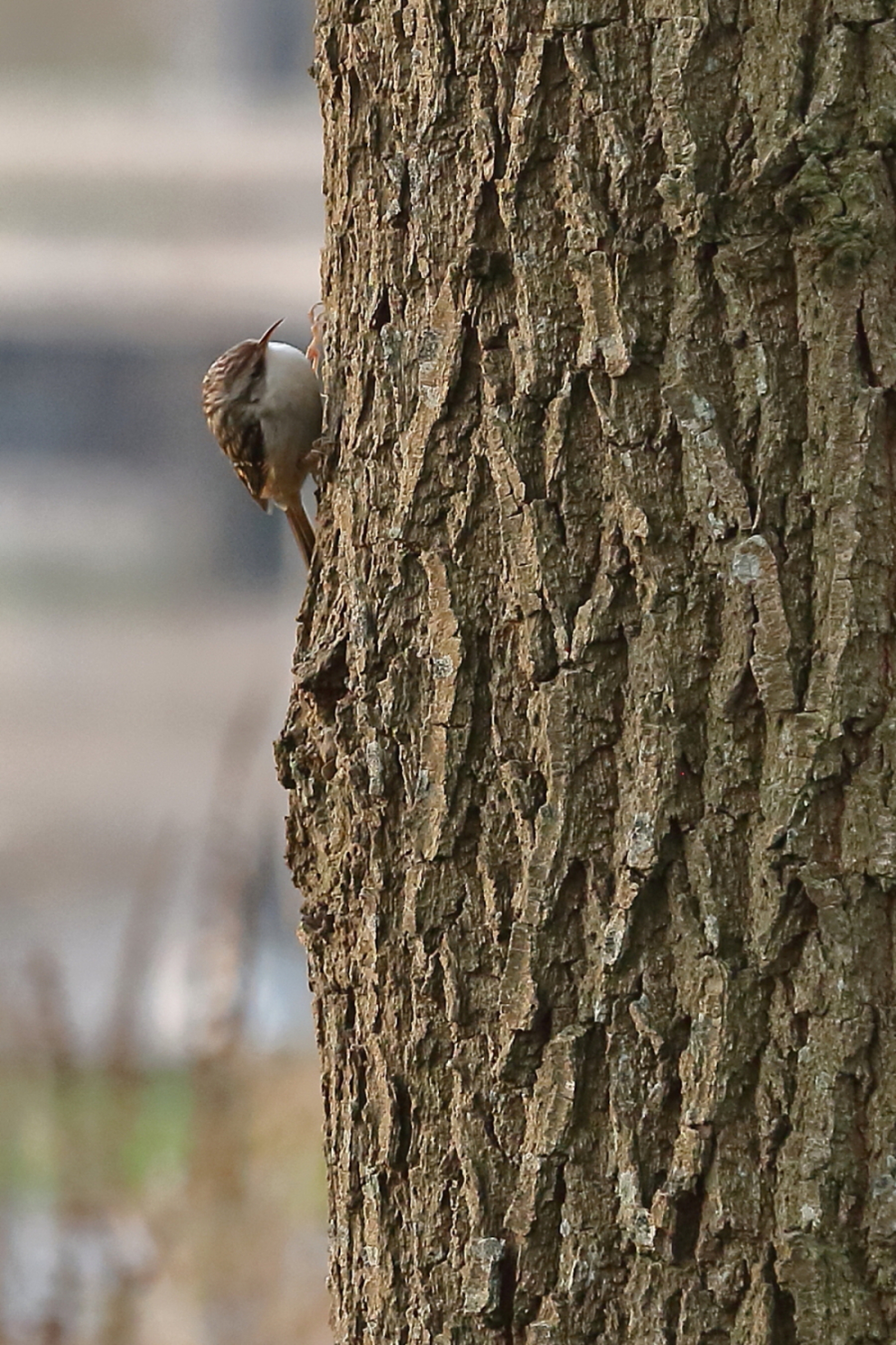 Mooie foto, van dit kleine beweeglijke vogeltje op een grote stam.