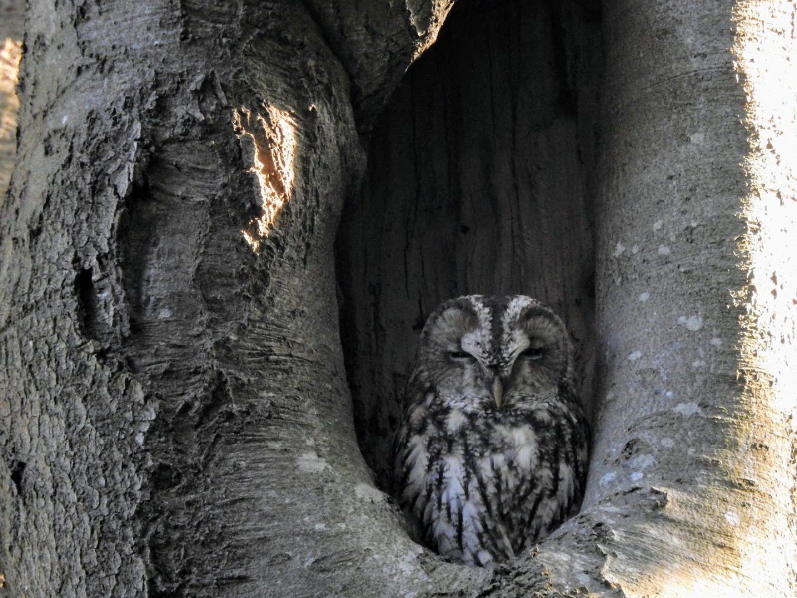 Tijdens mijn boswandelingen loop ik altijd even langs het Bosuiltje om te kijken of hij er weer zit. Ze broeden in grote boomholtes en nestkasten