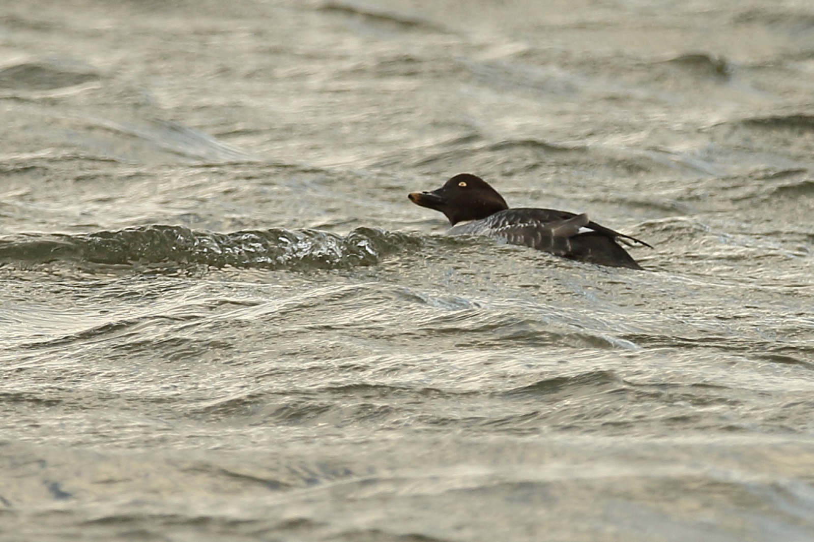 overvliegende buizerd zorgt ervoor dat brilduiker omhoog kijkt