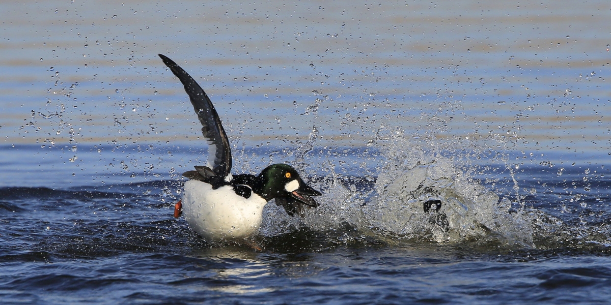 Dat de Brilduiker in het Engels en Frans 'Goudoog' genoemd wordt wist ik. In het heftigste van de strijd tussen twee rivaliserende mannen is verrassend ook even een oog zichtbaar ...