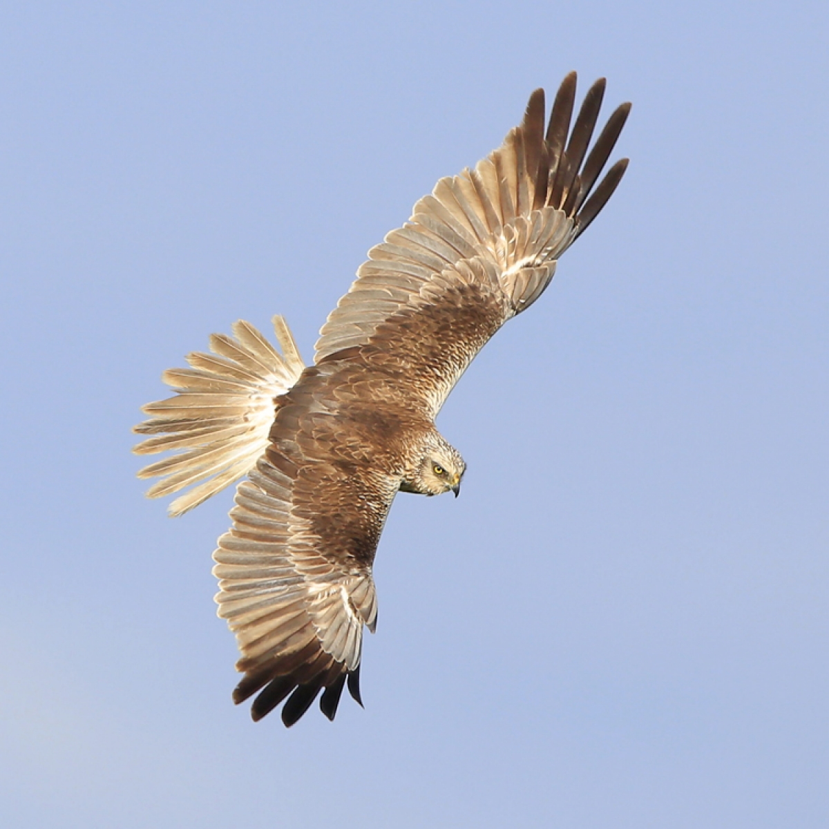 Een man Bruine Kiekendief maakt hier een zwierige zwaai in de lucht terwijl hij van richting verandert...