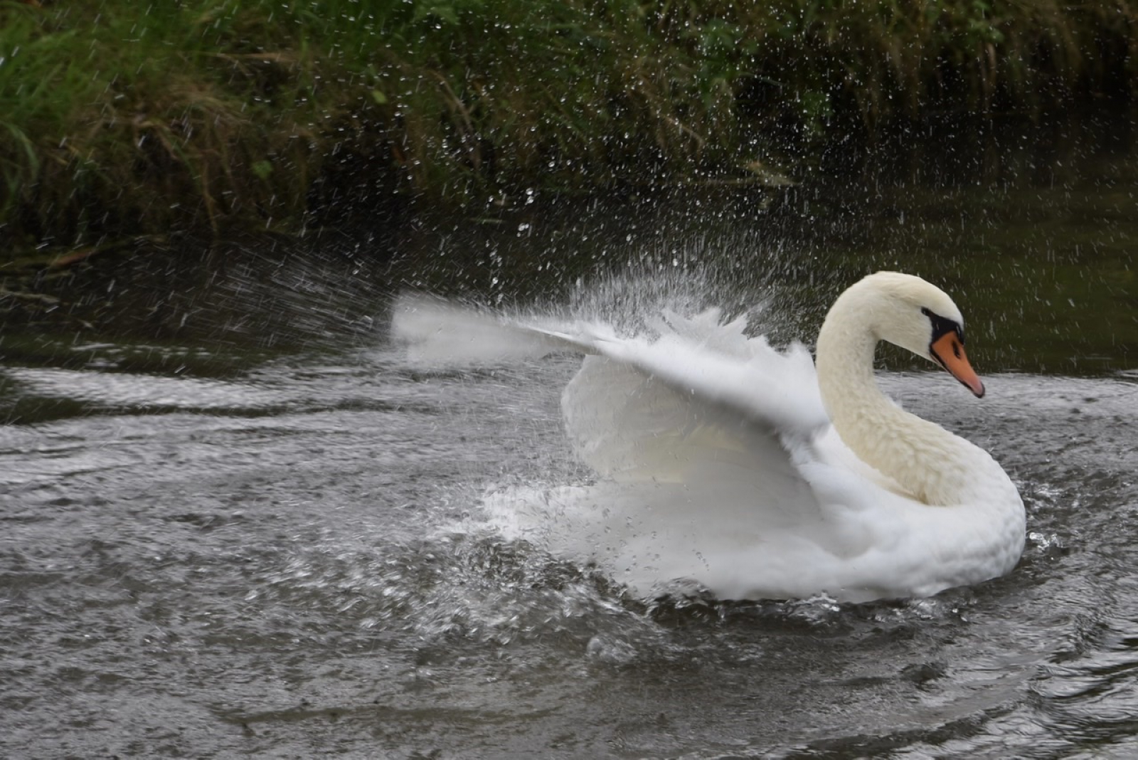 Je hebt heel veel foto's van die poetsende en zich uitschuddende zwaan gemaakt, deze zijn ook mooi en deze met die druppels vind ik het mooiste!!