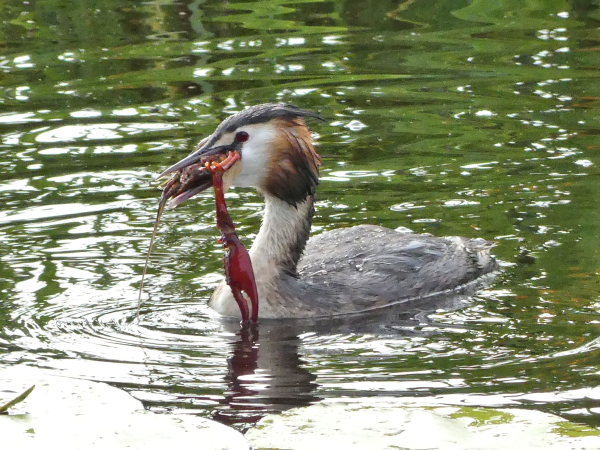 Hoe groot kan hij hem hebben ? Eerst worden de scharen eraf gesloopt. Even onderdompelen en draaien en naar binnen gaat het lijf.