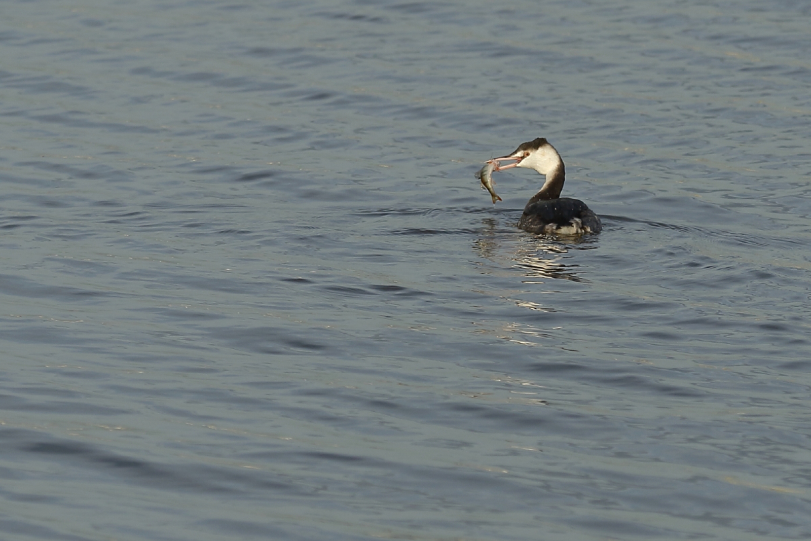 Er zitten heel veel futen in het IJsselmeer. Een enkele dook en ving uiteindelijk een visje, een andere kwam met een tak naar boven….