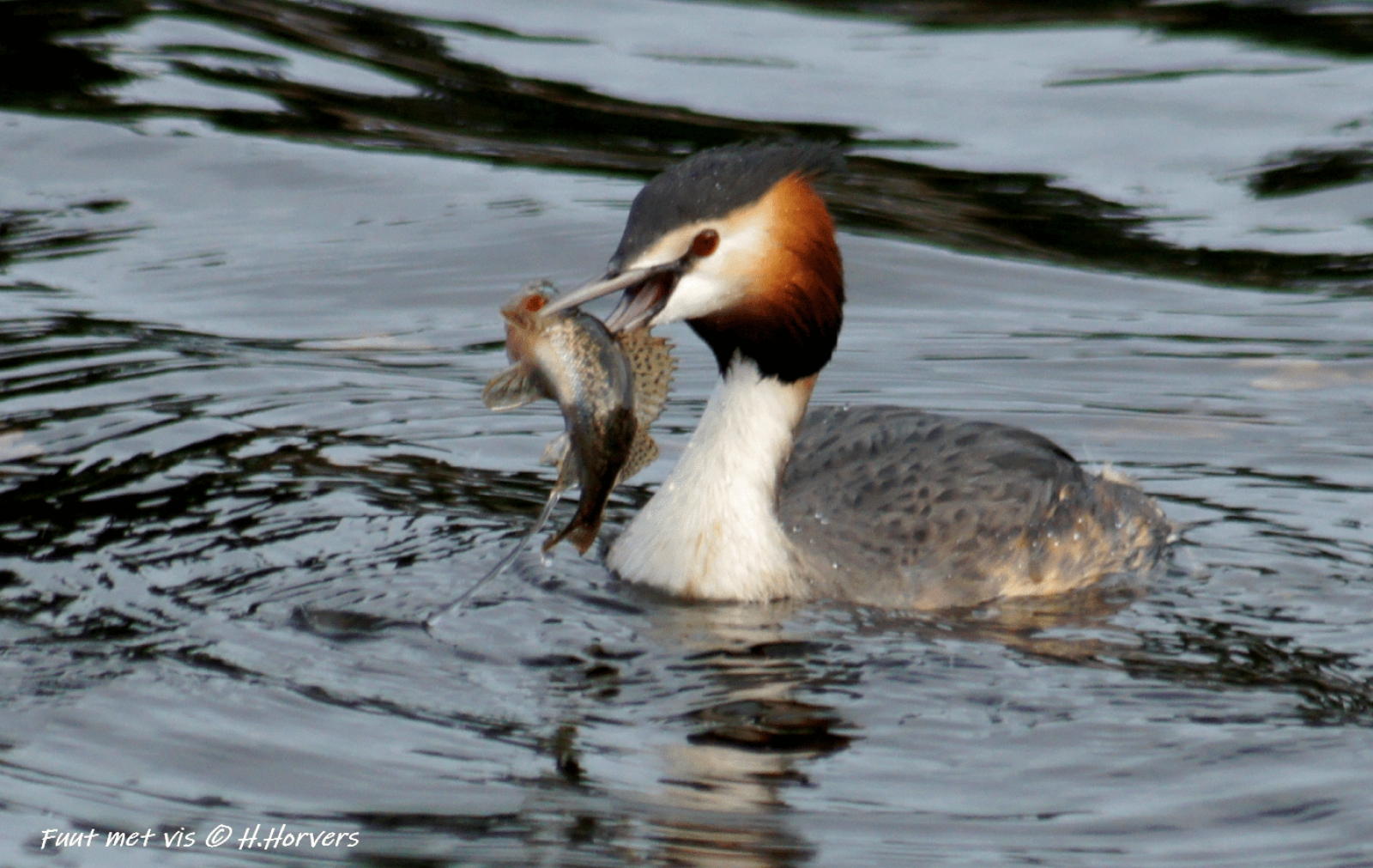 Fuut met prooi