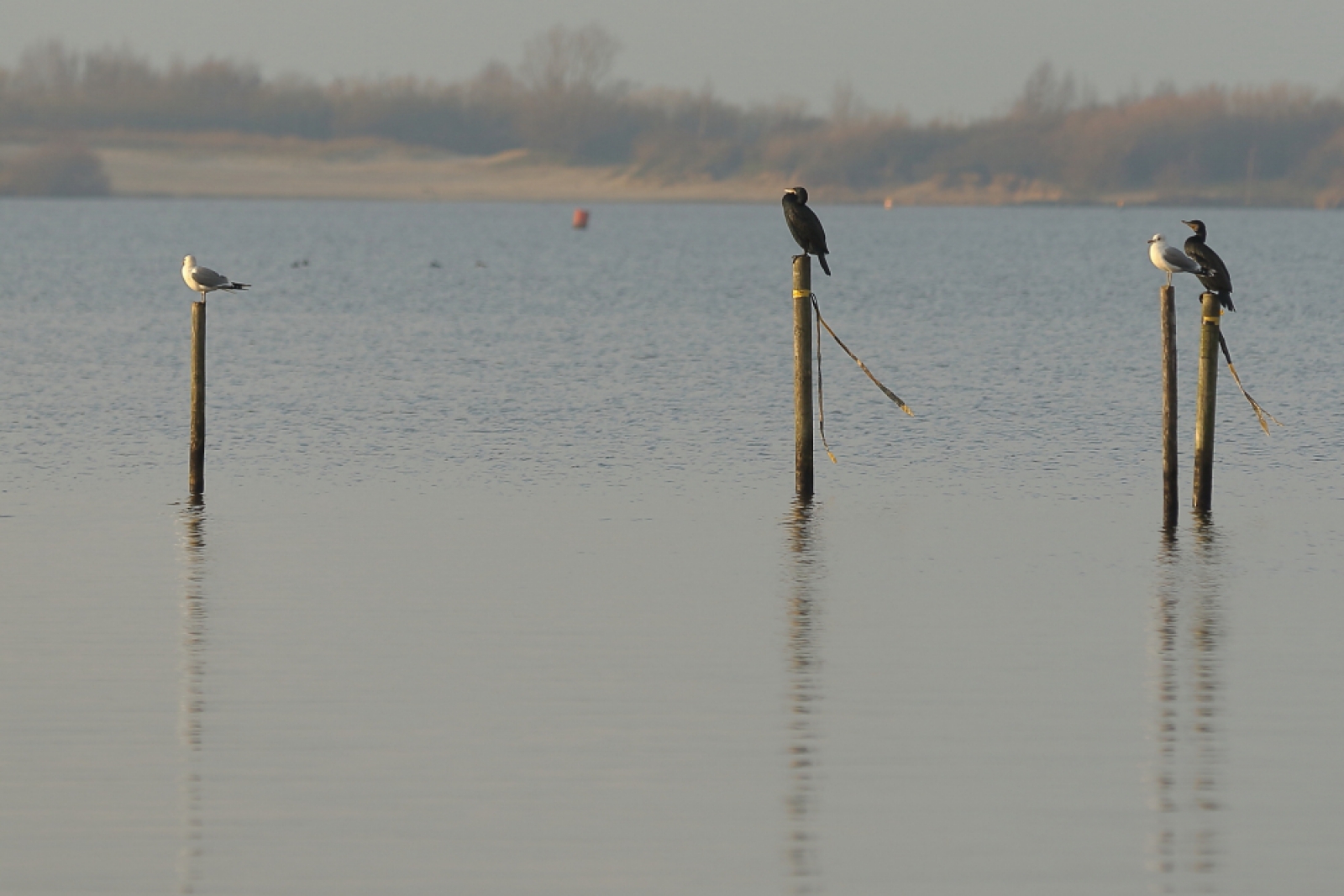 aalscholvers en stormmeeuwen aan het Tjeukemeer