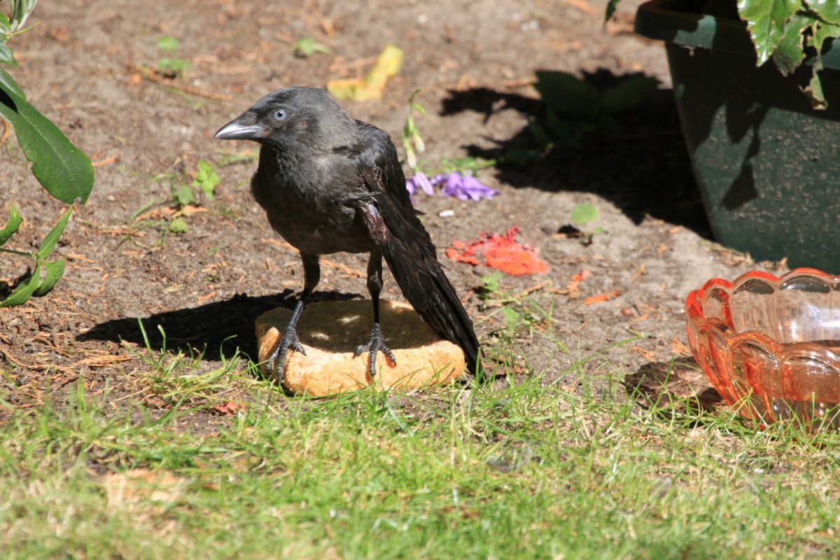 Door wond aan een vleugel kon hij niet goed meer vliegen.Na een stuk brood met wat water,had hij de kracht om weer weg te vliegen.