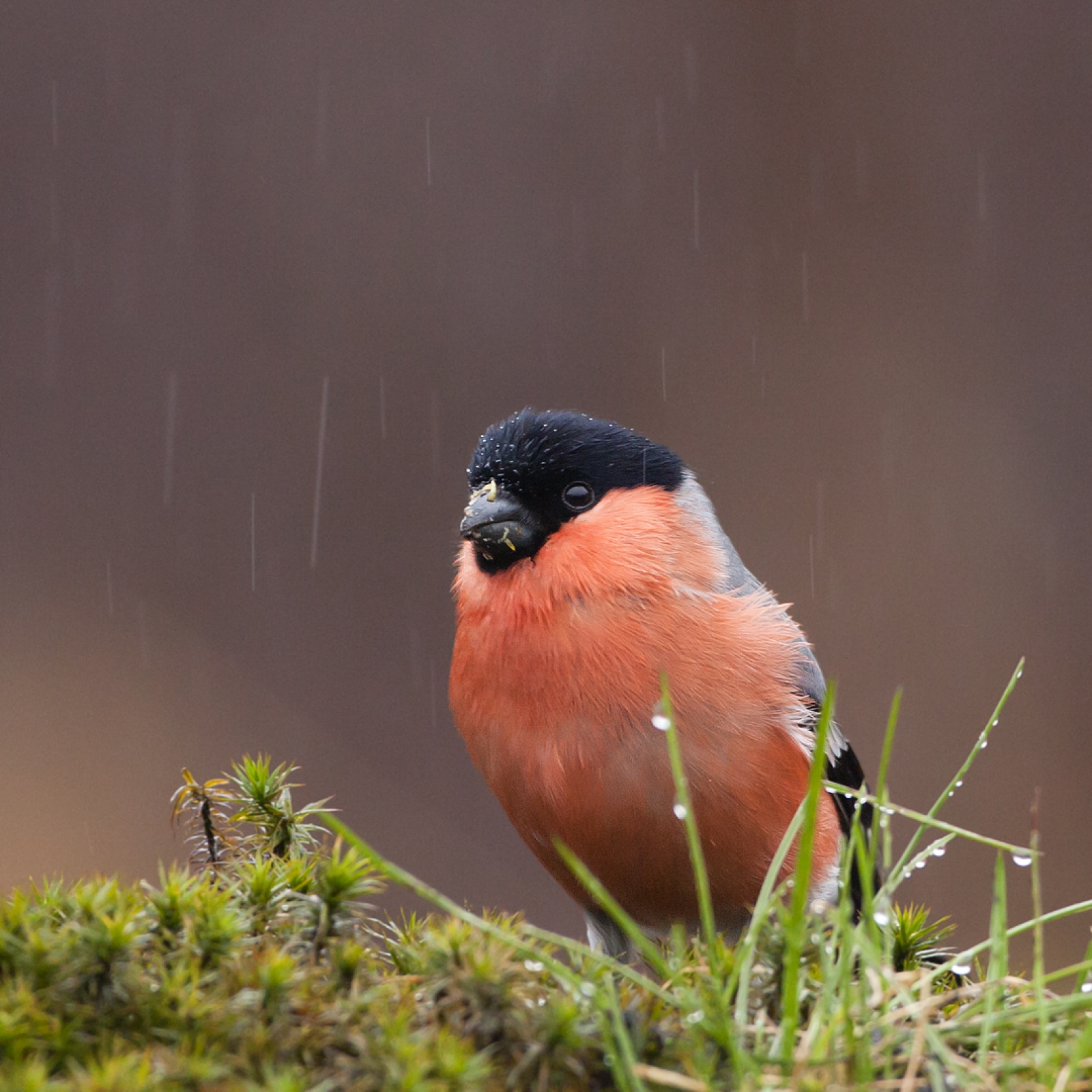 Een Vink met de naam van edelmetaal... Eén van de mooiste vinkensoorten die we kennen. Hier zie je een mannetje in de milde regen ...