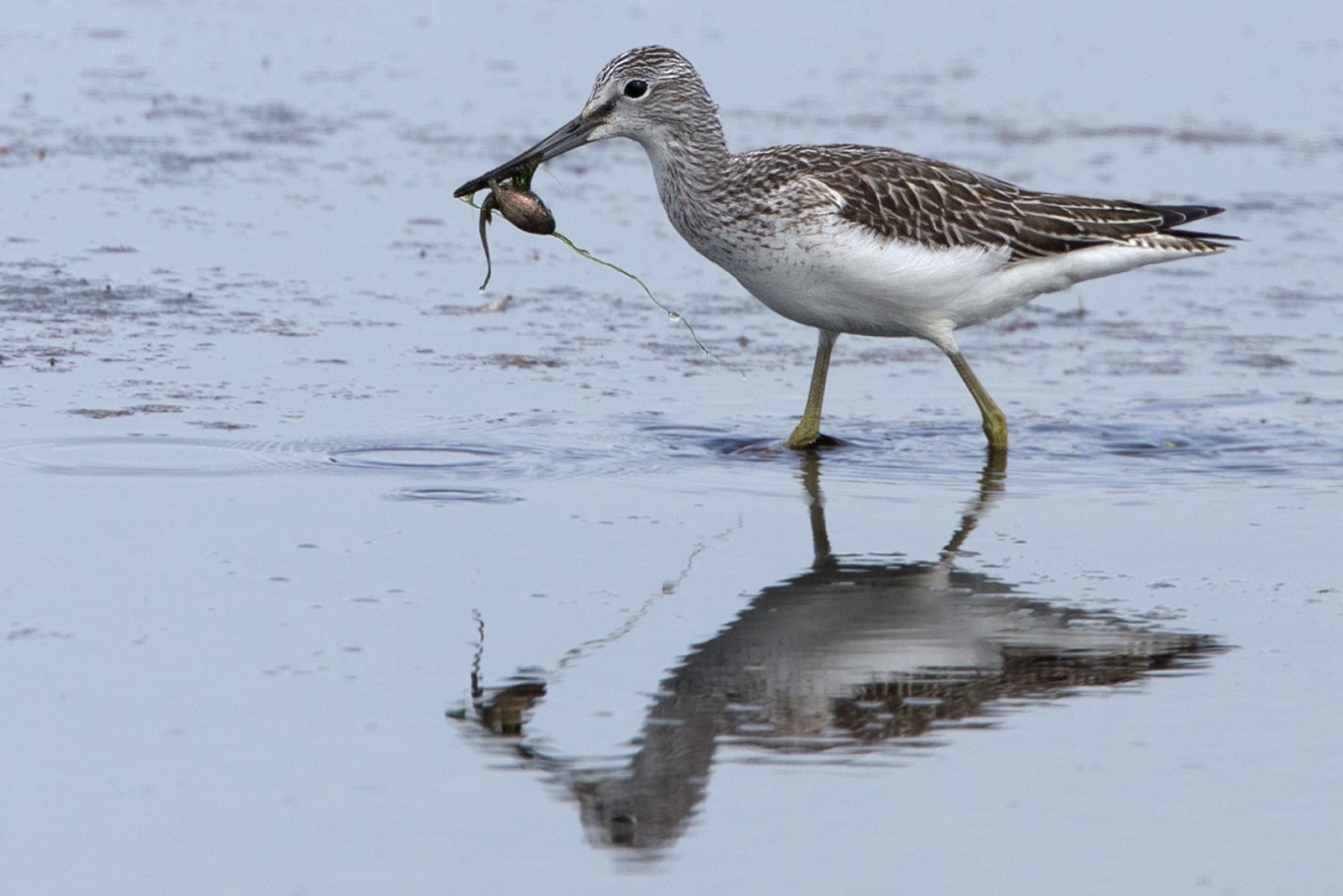 De Friezen noemen hem zo en dat lijkt erg veel op het engelse Greenshank... :-) Een enorme kikkervis met groente staat er nu op het menu...