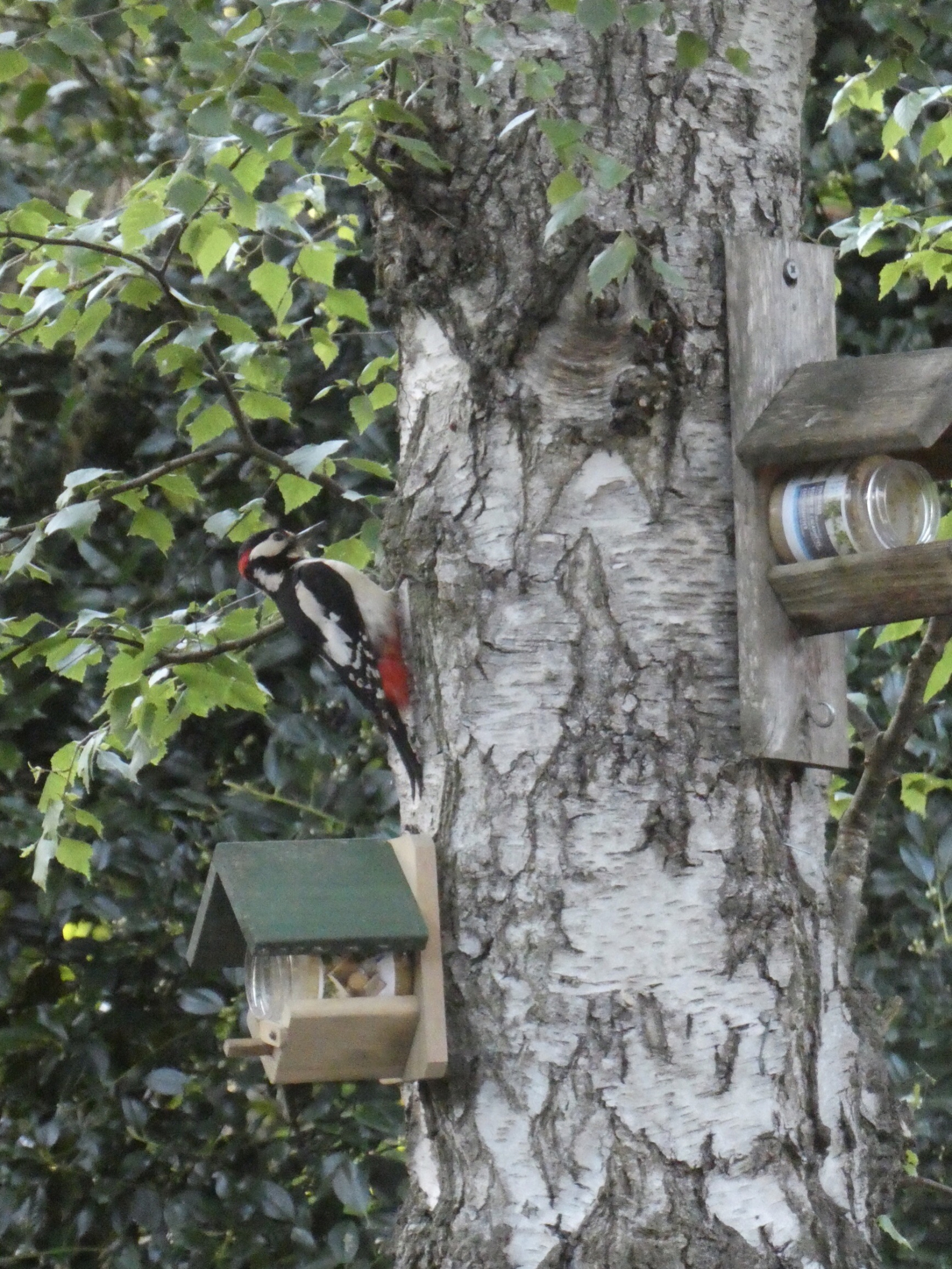 Aan tafel, tijdens het eten, door een raam met dubbelglas zijn deze spechten foto’s genomen.