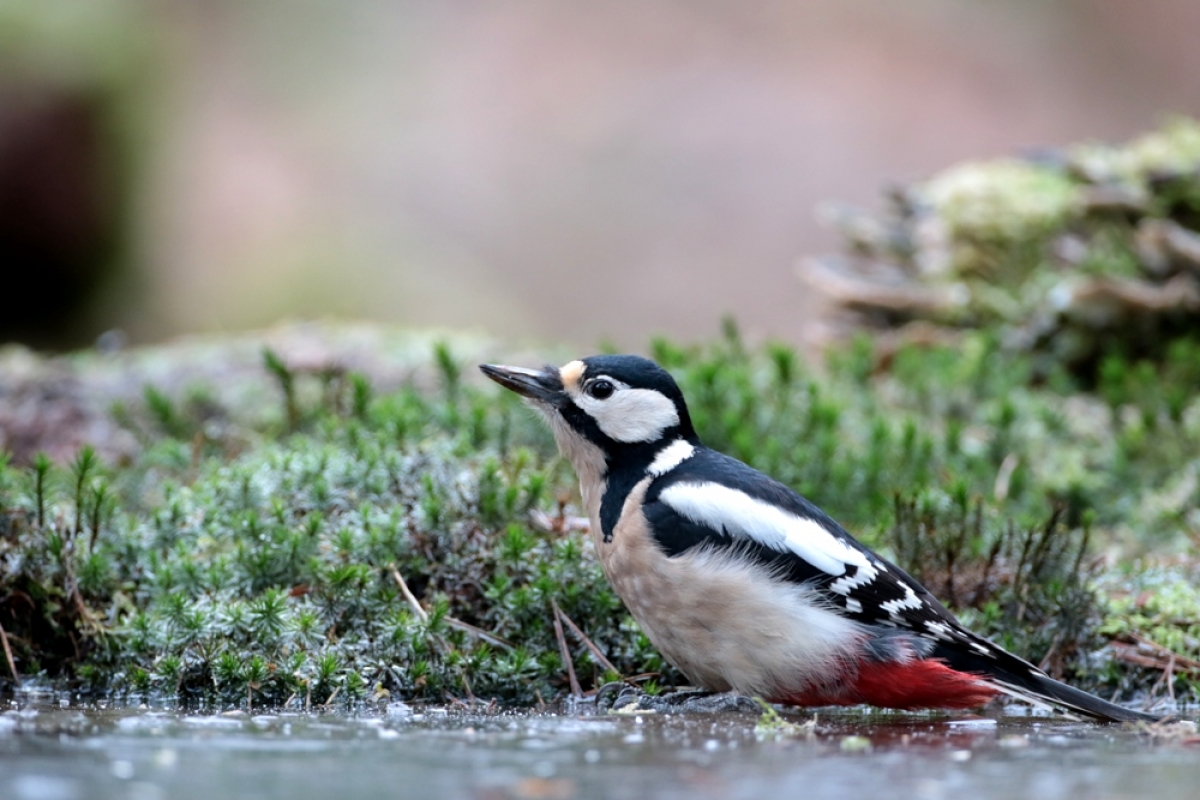 Grote Bonte Specht waagt zich op glad ijs en ziet er dan wel erg onwennig uit!!